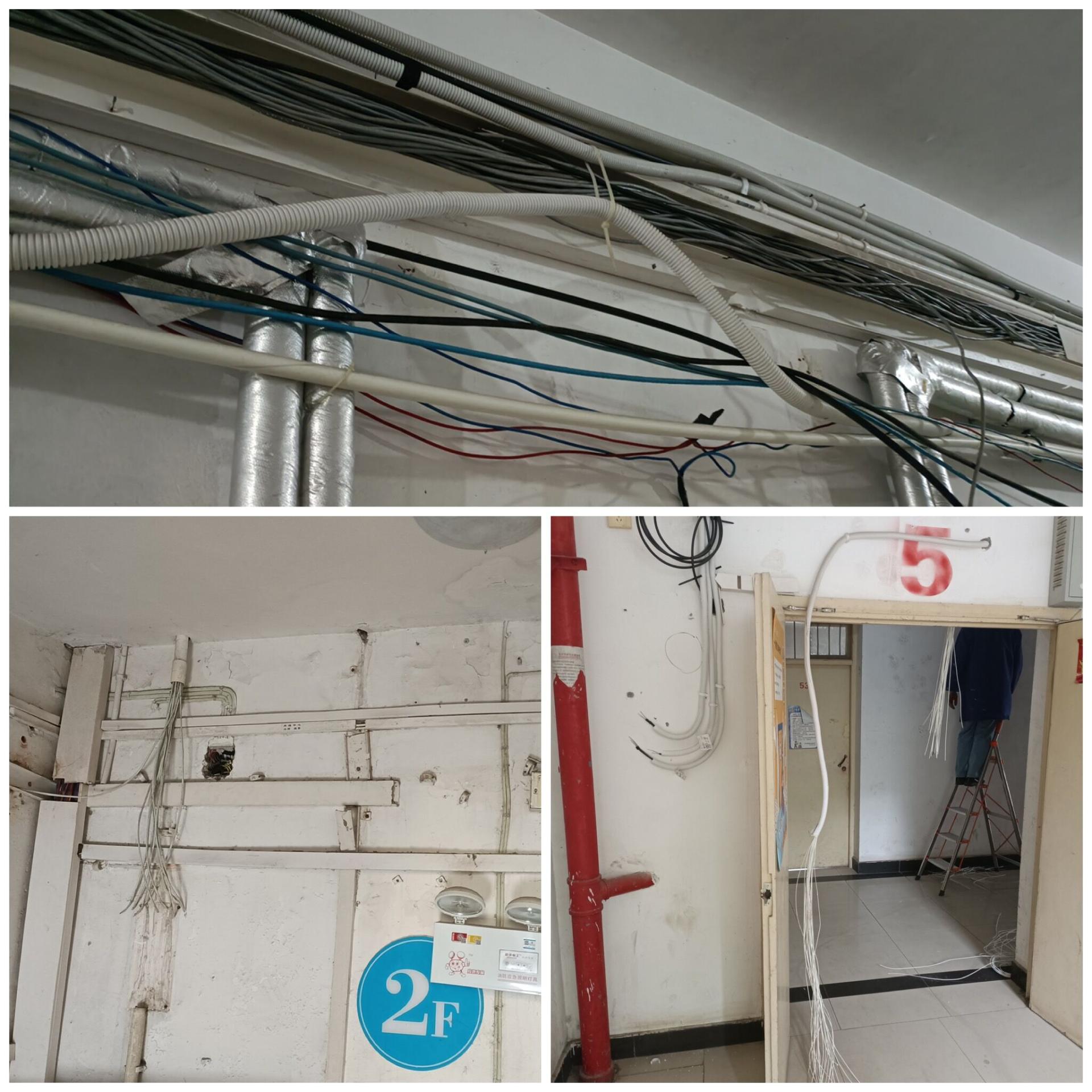 5月初,学生住宿服务中心结合“安全生产月”活动方案,对学生公寓楼内多年因设备安装位置不规范,造成的电线、网线、光纤等线材铺设杂乱和断线废线残留,进行现场勘察,详细记录乱象比较严重的楼栋,并结合新生房源情况,充分考虑存在的困难,制定二期废旧线路清理方案。