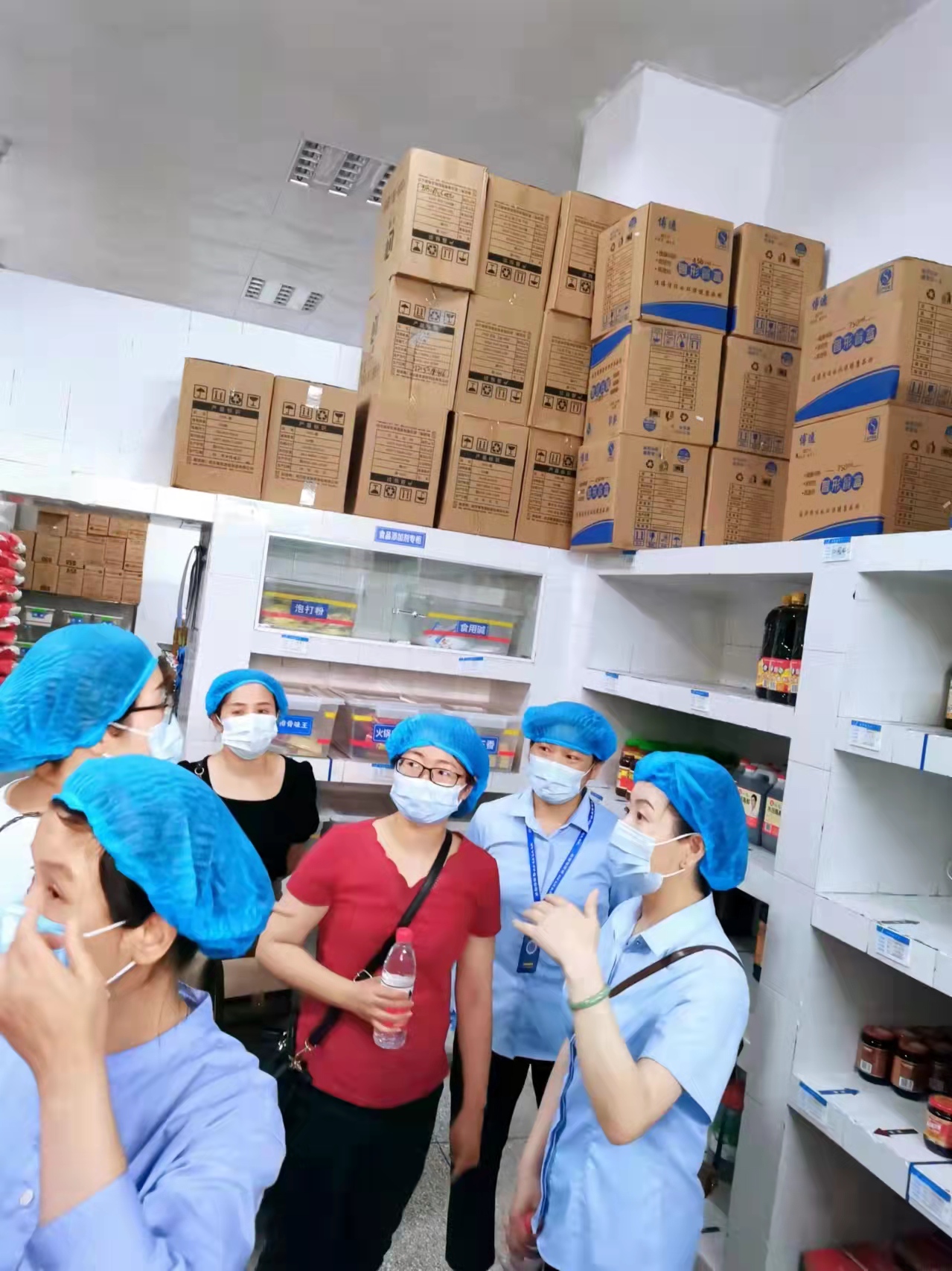 随后调研组一行前往食堂仓库进行了参观,详细了解物资保管员和食堂核算员的日常工作,包括生产物资出入库明细填写,货物索证索票,食材检疫检测报告、供应商资质、合格证公开透明,文件严格归档管理……调研组表示,了解食堂工作流程后,对生产经营核算数据的认识不仅仅停留在单据上,而是更加清晰立体,利于今后财务工作开展。