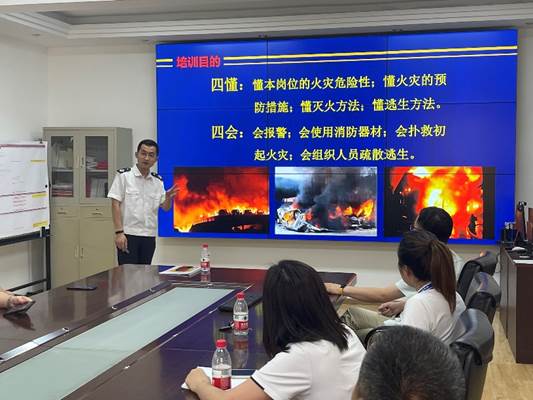 培训过程中,教官按照安全生产月“遵守安全生产法 当好第一责任人”的主题,结合近年来各地频繁发生消防安全事故的周期特点,围绕夏季安全生产、家庭用火、用气、用电等可能引发火情的现状,采用图片、视频和案例相结合的方式,重点讲解了如何正确扑救初起火灾、如何预防和控制火灾、如何正确拨打119报警电话、如何正确引导人员疏散以及逃生自救等消防常识。内容详细丰富,案例剖析透彻,为大家再次敲响了安全警钟。