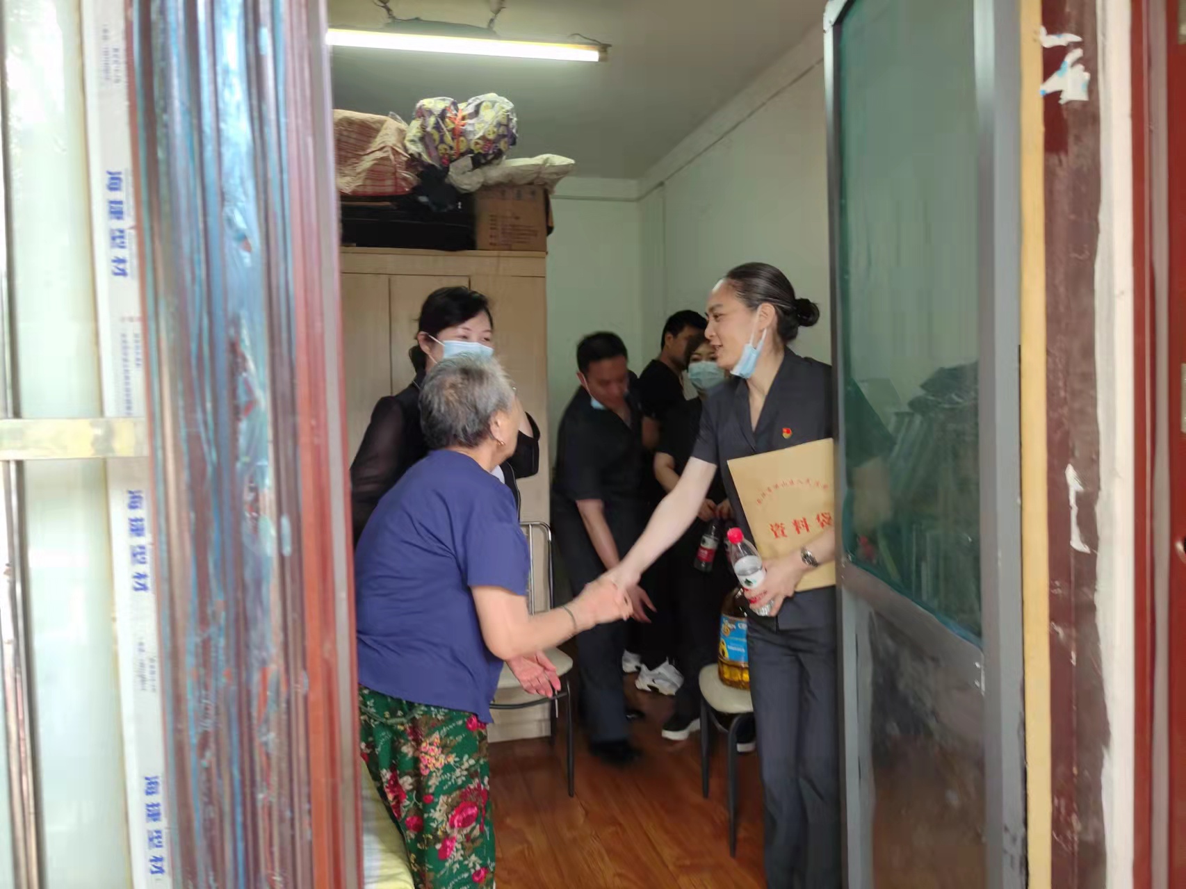 会后,洪山区法院执行局党员和社区工作人员一起上门走访慰问困难党员。在90岁高龄的困难党员余健老人家中,执行局李晓雁书记一行详细的询问了她的身体情况及生活情况,为其送去关心和爱心。