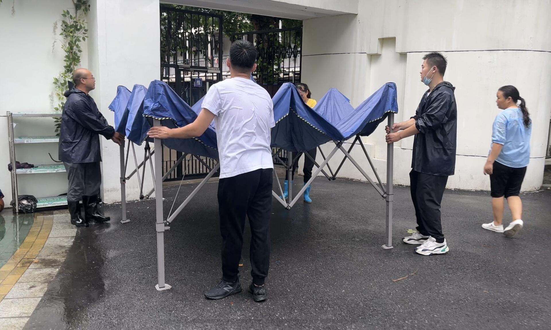 近期武汉天气变幻无常,为做好恶劣天气防范应对工作,5日下午,中心成立搬迁应急突击队,党员干部积极发挥先锋模范带头作用,不畏风雨,迎难而上,在搬迁楼栋搭设合计20顶帐篷,为搬迁师生遮风挡雨。