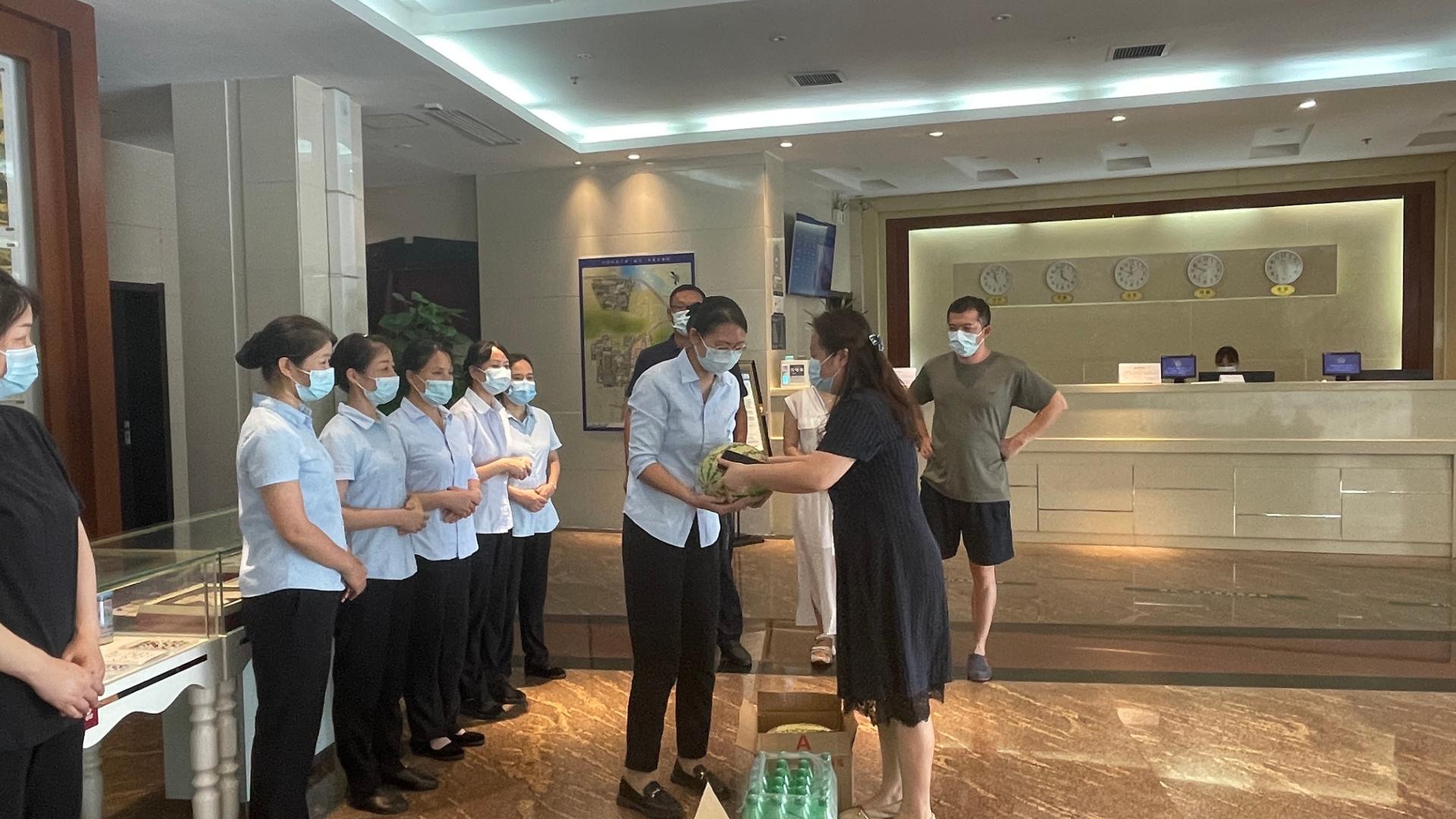 破纪录的高温,从七月“烧”到了八月,连续的高温天气让暑期坚守岗位的后勤一线员工酷暑难耐。为表达对中心员工的关心,对疫情防控常态化下克服高温酷暑、坚守一线岗位的后勤工作者的关怀,8月16日上午,后勤保障部副部长林芸带队慰问暑期坚守岗位的一线员工,接待服务中心领导班子陪同参加。