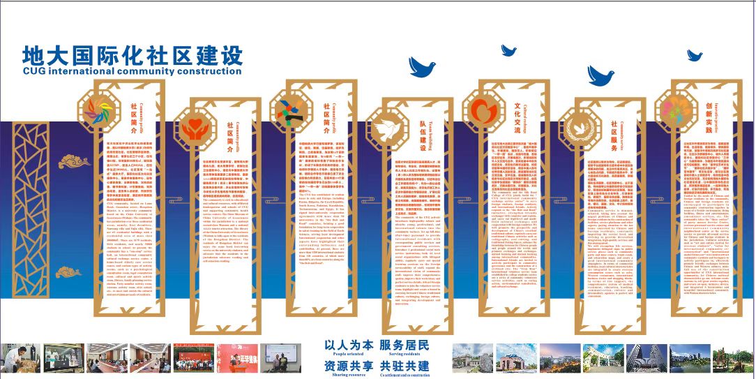 地大社区作为高校型社区,与高校建立合作机制,充分发挥高“因地制宜、资源共享、优势互补、共驻共建”的优势,不断完善“机制建设、队伍建设、平台建设、文化建设、亮点建设”五位一体的社区工作机制,着力打造安全保障类、便民生活类、学习成长类、咨询服务类等各类配套服务,用心打造“开放包容、多元融合、和谐美好”的具有武汉特色、地大特色的地大国际化社区文化交流服务中心。