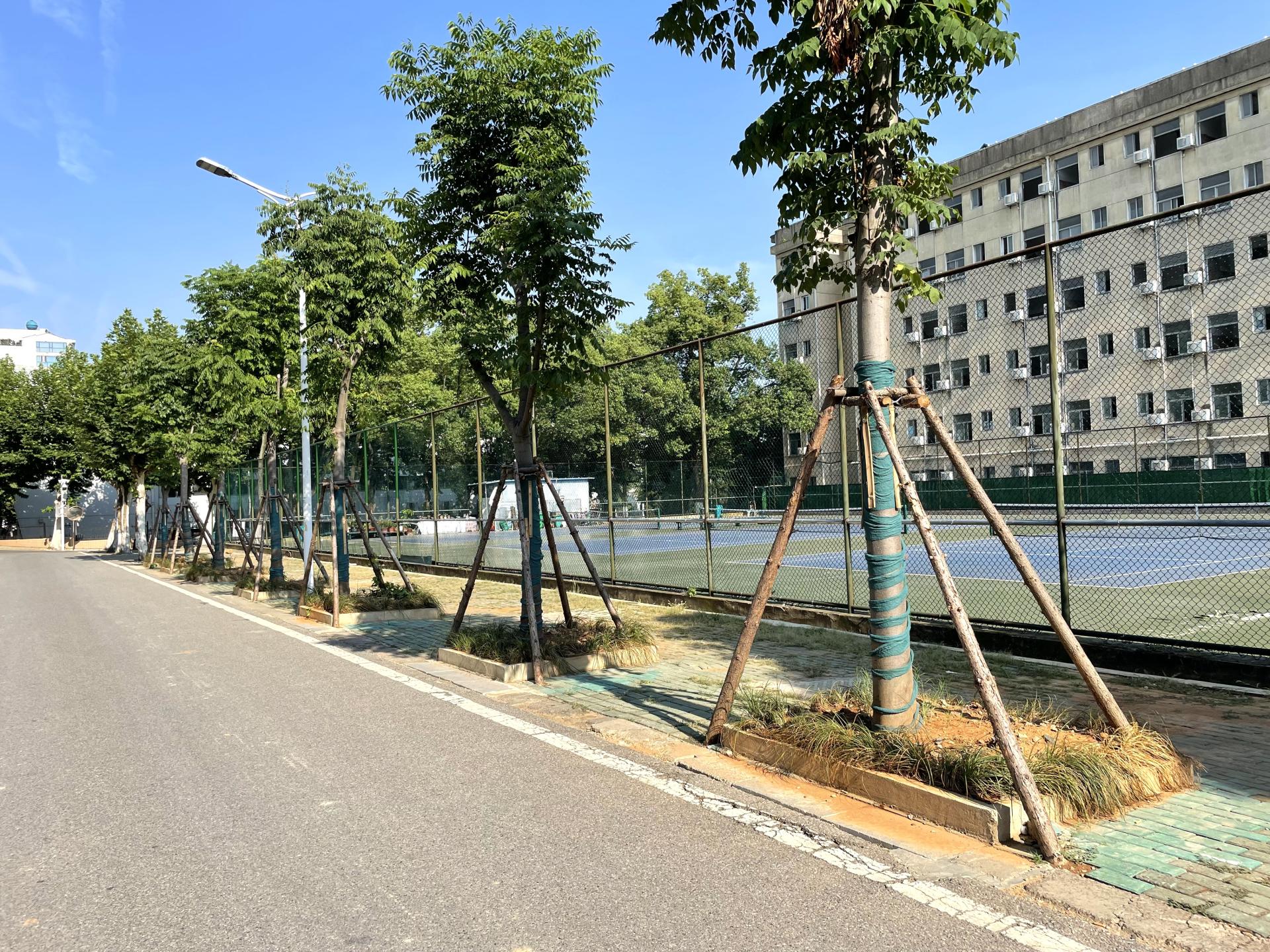维修员们首先进行杂草清除、地面平整;再挑选校园雨污分流拆除的废弃花砖铺设地面,此举既硬化了路面,又解决废砖堆积的难题,还节省了材料成本;接着对晾衣杆逐根进行加固、除锈、刷漆;最后装上全新晾衣绳,同时对周边护栏进行修补刷漆,营造一个安全、整洁的晾晒区。