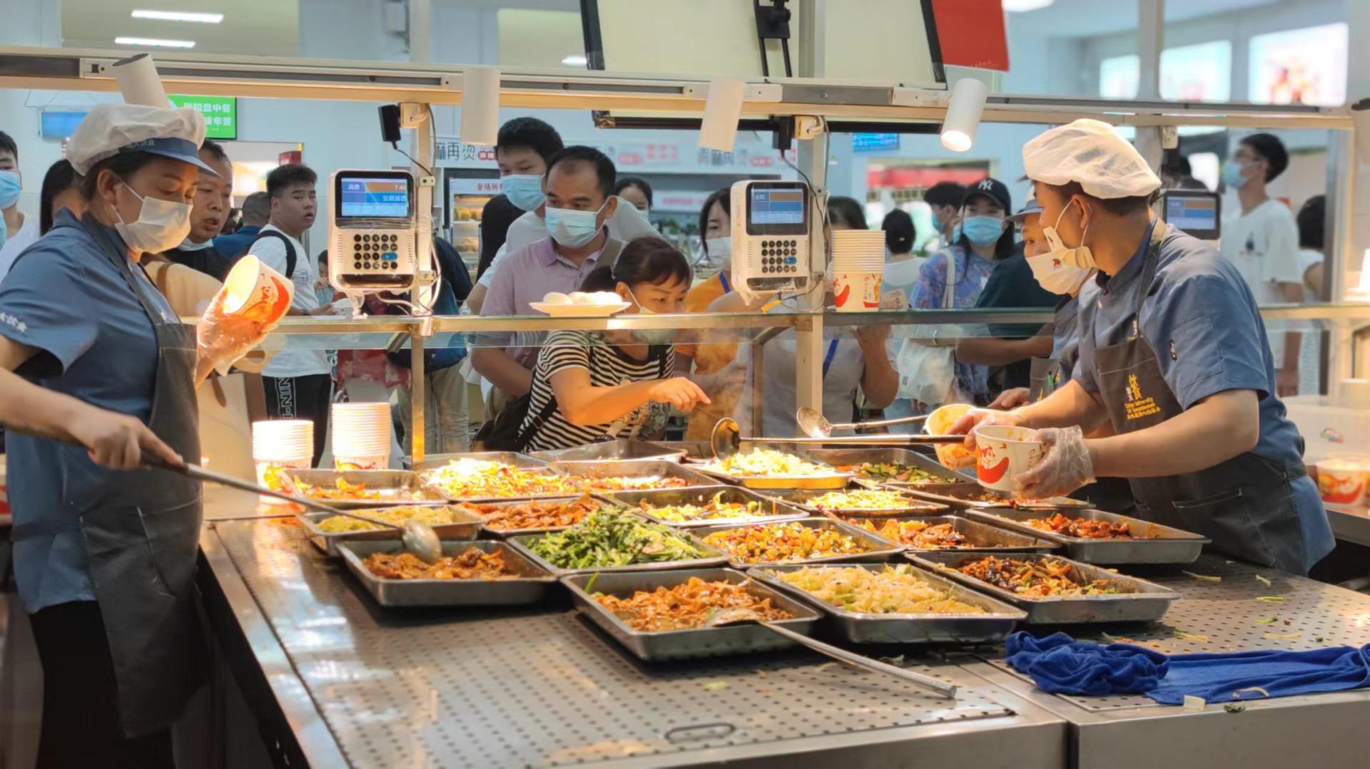 为保障迎新期间餐饮供应,中心提前储备大宗物资,员工摩拳擦掌,打起十二分精神,不顾汗水浸湿的衣衫、不顾劳累的身体,将最贴心的服务送予每一位师生及家长。9月2日,根据实际情况,中心调整学二食堂、学三食堂作为值班食堂,学二食堂供餐时间延至23:00,学三食堂夜市营业至9月3日凌晨1:00,全天候随时保障大家的餐饮供应。