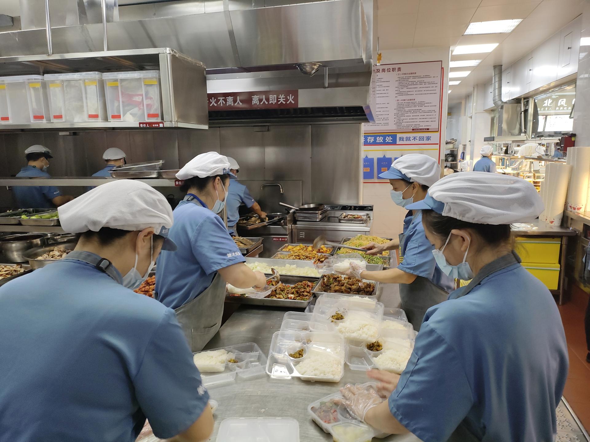 8月20日至9月2日 东苑餐厅每日为隔离在迎宾楼的师生制作并配送早中晚三餐隔离餐,共计891份。隔离餐荤素搭配均衡,还配上一瓶牛奶,满足师生每日营养需求;同时为让大家按时吃上一口热饭,餐厅在就餐高峰期抽调人手制作并及时配送隔离餐,颇受师生好评。