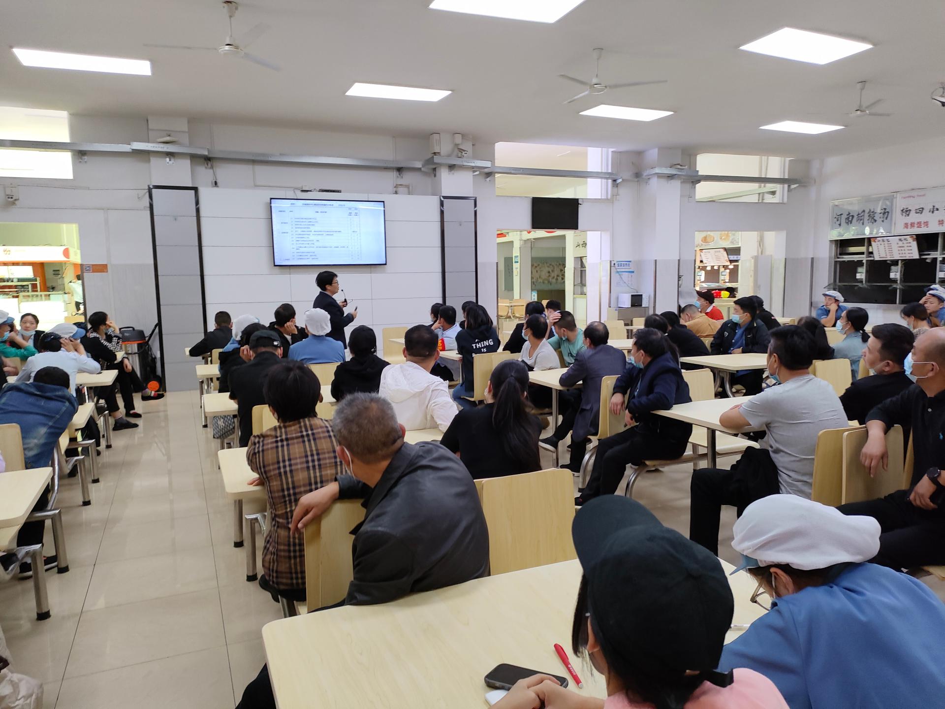 下午15:00,各食堂管理人员、自营员工、合作档口员工及餐饮公司人员准时到达培训现场。本次培训由中心综合办公室主任韩剑芳主讲。她从服务目标、经营标准、合同期限、经济责任目标、相关规定等方面入手,强调档口菜品上新、制定价格、原料采购等方面一定要遵循规定流程,有审批过程,这样才能保护双方权利,更好为师生提供优质安全的餐饮服务。