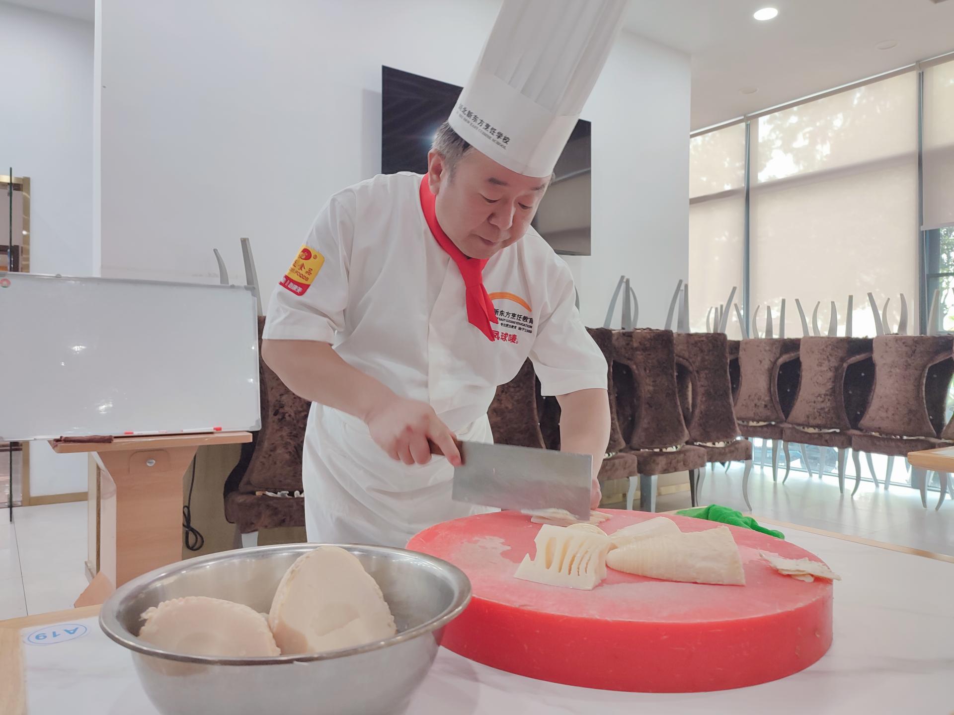 为提升厨师队伍专业知识水平和实践操作能力,接待服务中心特邀请湖北新东方烹饪学校高级教师、职业技能等级认定高级考评员张涛老师,于7月30日在震旦园餐厅开展了“学一流技术,创一流餐饮”厨师技能培训。培训由接待服务中心党支部书记吴华玉主持,中心领导班子和餐饮部全体员工参加。
