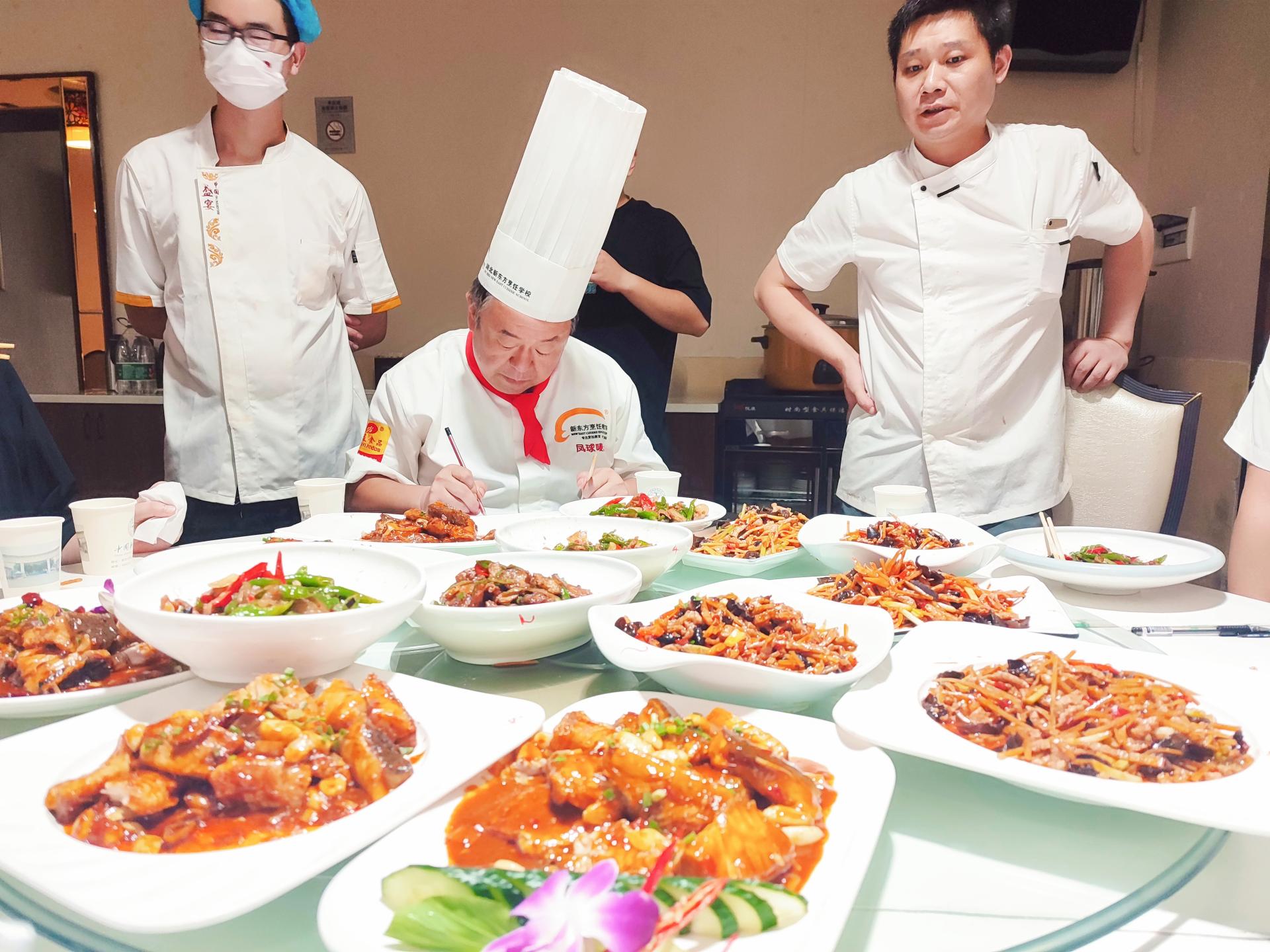 本次培训作为中心暑期培训系列二,仍采取灵活多样的教学形式进行理论讲授、实操演示。张老师从原料的选取、刀工处理、调料配比、食品安全到烹饪加工、摆盘设计等环节进行了深度讲解,并对油焖大虾、酸菜鱼火锅、梅干菜扣肉、清炖狮子头、鱼香肉丝等传统菜品进行了现场教学。教学环节结束后,餐厅五名厨师进行了三道菜肴的实操烹饪,张老师对菜品从品相、口感、摆盘等方面进行了专业细致的点评。培训过程中厨师们积极提问,不时相互探讨交流,真正融入到了培训学习中,大家纷纷表示获益匪浅。
