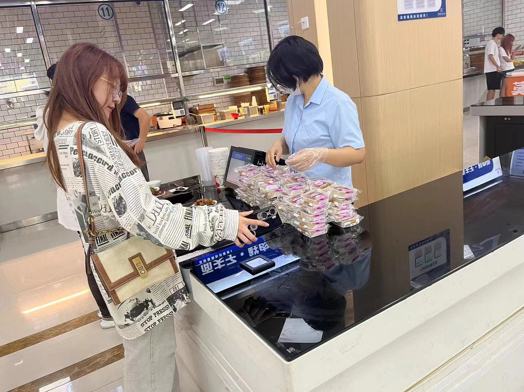 9月29日,当你走进未来城校区学一食堂、东苑餐厅、西苑餐厅、北区食堂及学三食堂的自营档口,醒目的红色海报渲染着节日的喜庆氛围;放弃假日休息的档口员工们兢兢业业完成生产,为大家的餐饮服务保驾护航;窗口服务员们耐心服务,面露微笑,热情地将月饼送到每一位师生手中。