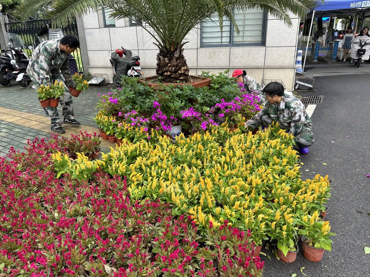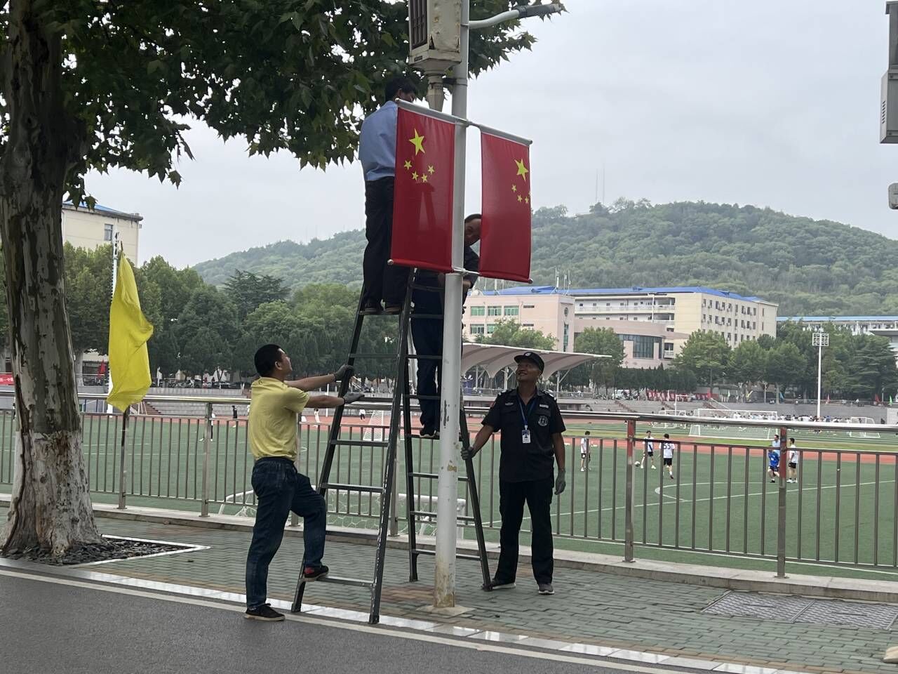 物业服务中心坚持以重大节庆为契机,积极营造校内浓厚节日氛围,通过“沉浸式”宣教方式,宣扬爱国情怀,加强爱国主义教育。教学楼作为服务育人的重要阵地,物业服务中心在楼内悬挂国旗并进行节日投屏,营造节日氛围的同时进一步弘扬爱国主义精神;提前挑选合适的绿植,在东一门和西一门摆放火凤鸡冠花1400盆,热烈的红与金色的黄搭配,鲜艳夺目;在运动场、篮球场布置彩旗85面,在学校主要路段、重要节点悬挂国旗400面,每一面旗子都由员工手工组装、悬挂,挂好的国旗与翠绿的树木互相映衬,鲜红的国旗迎风飘扬,在校园内形成了一道靓丽的风景线。