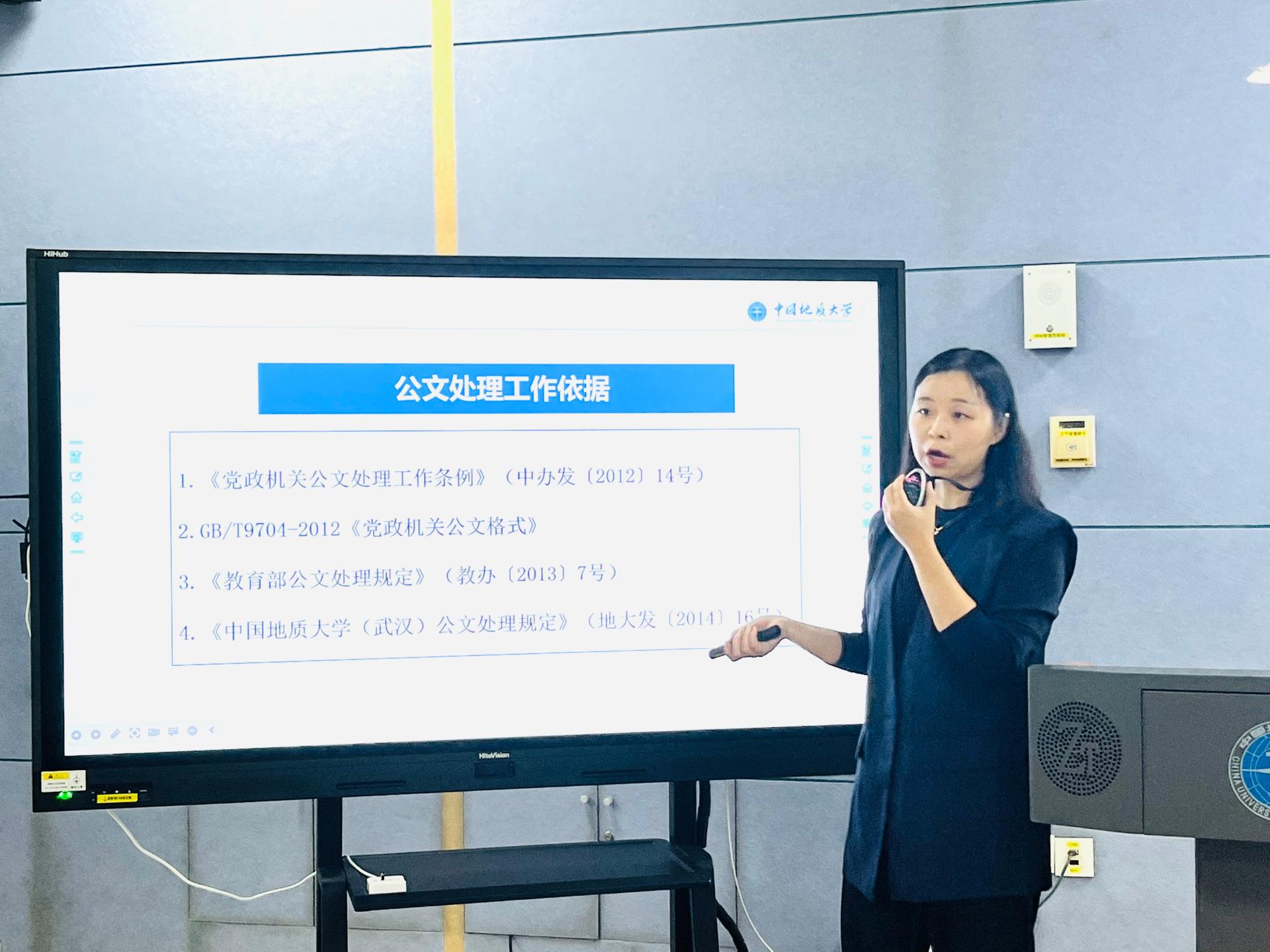 为进一步提升后勤保障部中层领导干部及青年职工公文写作水平及行文规范,10月25日下午,后勤保障部邀请学校办公室文书科科长丁为,在南望山校区教学综合楼C105开设公文写作培训。本次培训面向各中心、科室副经理及以上中层领导干部、管培生、信息员,培训由副部长林芸主持。