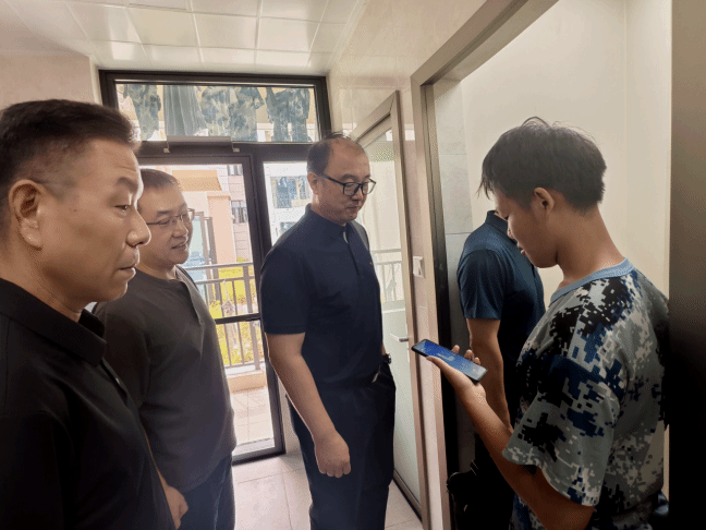 张红兵对学校学生住宿管理情况进行介绍。重点讲解了学生宿舍管理的创新举措,包括:智慧化学生宿舍门禁管理系统、学生宿舍电动车充电桩安全防护、6S自查制度、学生热水设施改造等建设管理经验。