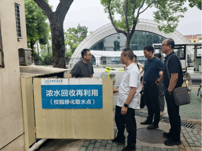 座谈会后,南开大学一行实地考察了南望山校区51栋学生宿舍热水设备、西区无人值守智慧泵房、学生宿舍1栋浓水回收点、锦鲤塘雨水回收利用系统等现场。