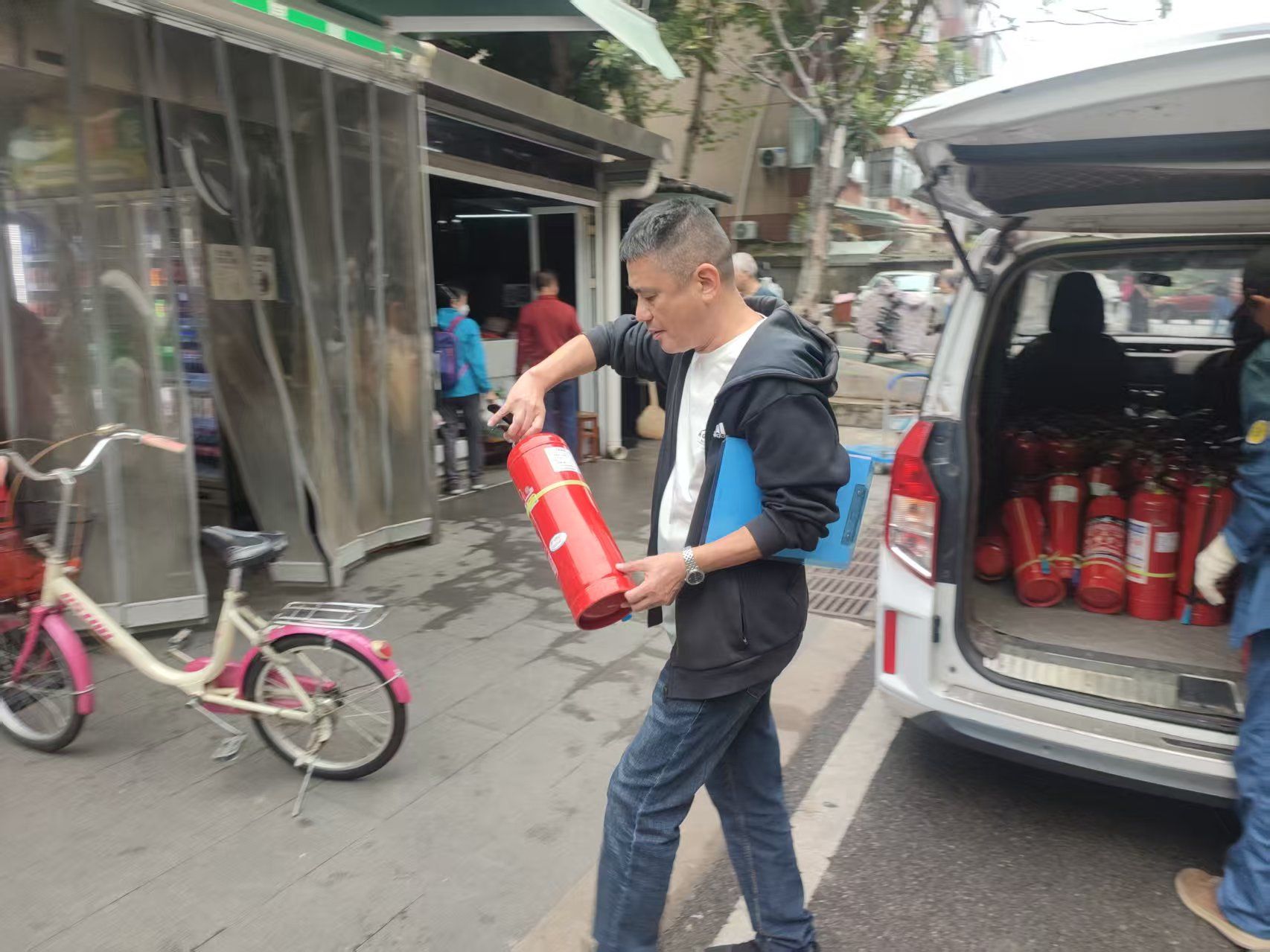 前期,劳动服务中心工作人员对邻近有效期的灭火器进行了细致的摸排统计,准确掌握了需更换灭火器的商户名单和数量,确保了工作高效、有序进行。更换过程中,消防科工作人员严格按照操作规范为商户换上了符合标准、指针压力正常的新灭火器并粘贴有效标签。同时,中心工作人员在现场给商户进行了消防安全知识宣讲,提醒大家要定期检查消防器材,熟练掌握使用方法,时刻保持警惕,确保在紧急情况下能够正确、迅速地使用灭火器进行扑救。商户李聪表示:“集中更换消防设备不仅为我们提供了便利,同时还提供了更专业的指导,增强了我们的安全感。”