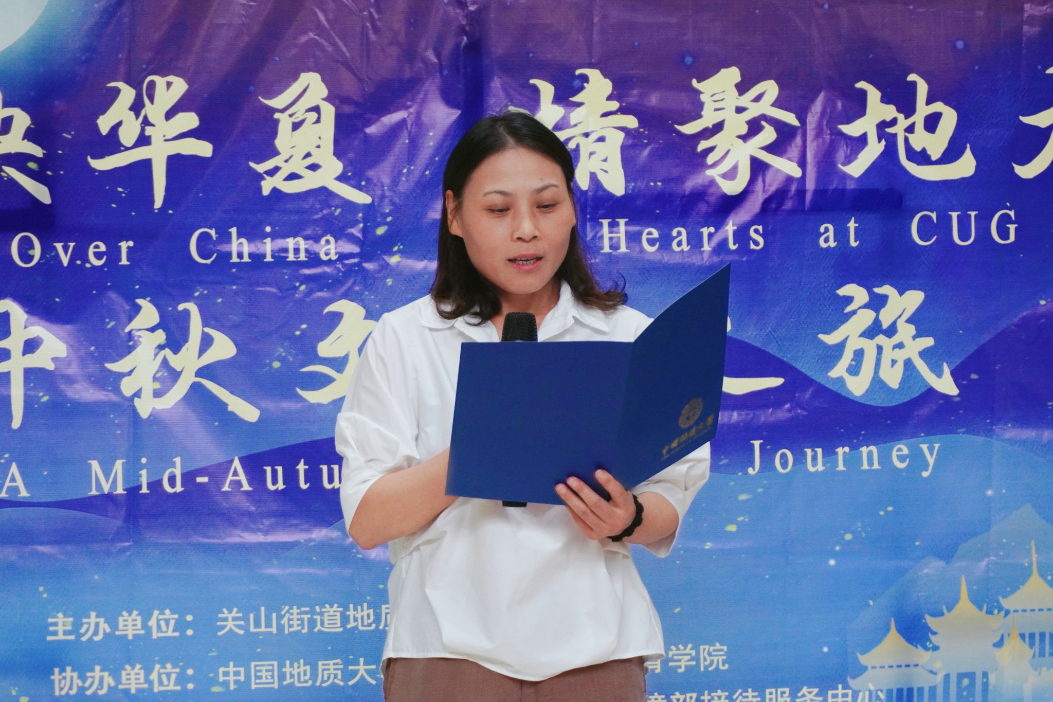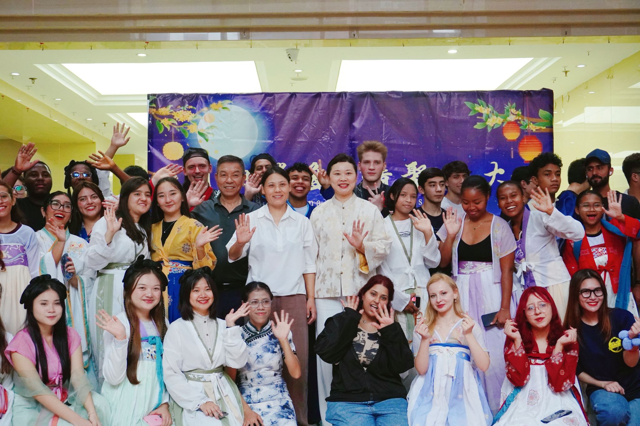 活动伊始,国际教育学院副院长与后勤保障部副部长黄晶晶先后致辞,阐释活动 “以文化联结中外青年” 的初衷,向师生送上中秋祝福。随后,中外学生代表组成的表演团队带来了兼具文化特色与互动感的精彩节目,瞬间点燃现场氛围。