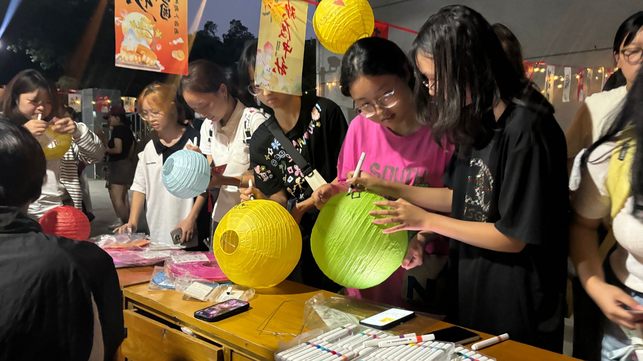 此外,中秋月亮小夜灯DIY、灯谜会、套圈游戏等传统活动也吸引了大批学生参与,现场笑声不断。
