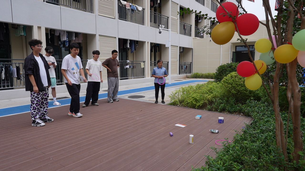 东二、东三、西三、北一、北二园区围绕 “传统文化传承” 与 “校园温情传递”各展所长:东二园区在研3栋院内用灯笼、彩带营造温馨氛围,通过诗词分享、神话交流传递中秋文化;东三园区设主题展板,以“月饼盲品猜馅料”“诗词接龙赢抽奖” 的小游戏带动互动热情;西三园区以游园形式开展,猜灯谜传承文化、投壶与套圈游戏满是欢乐;北一园区画灯笼区人气十足,学生们绘图案、写寄语,悬挂的灯笼成了风景线,“月兔” 投壶与尾声抽奖更将氛围推向高潮;北二园区主打温情,除了猜灯谜、还为学生发放月饼、柚子,并邀大家用家乡方言送祝福,满是烟火气与归属感。