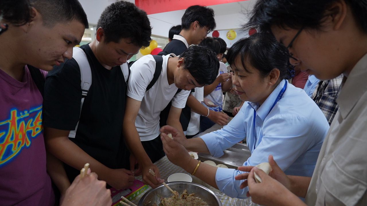 学生住宿服务中心:组织 “团圆包饺子” 活动,工作人员凌晨5点便开始忙碌,清洗切碎白菜、按比例调和肉馅,有条不紊备好食材。现场,工作人员分赴各小组,示范月牙饺、元宝饺等包法,鼓励学生发挥创意。待饺子煮熟,搭配蘸料分发给大家,同学们品尝后纷纷夸赞 “馅料味道一绝”。