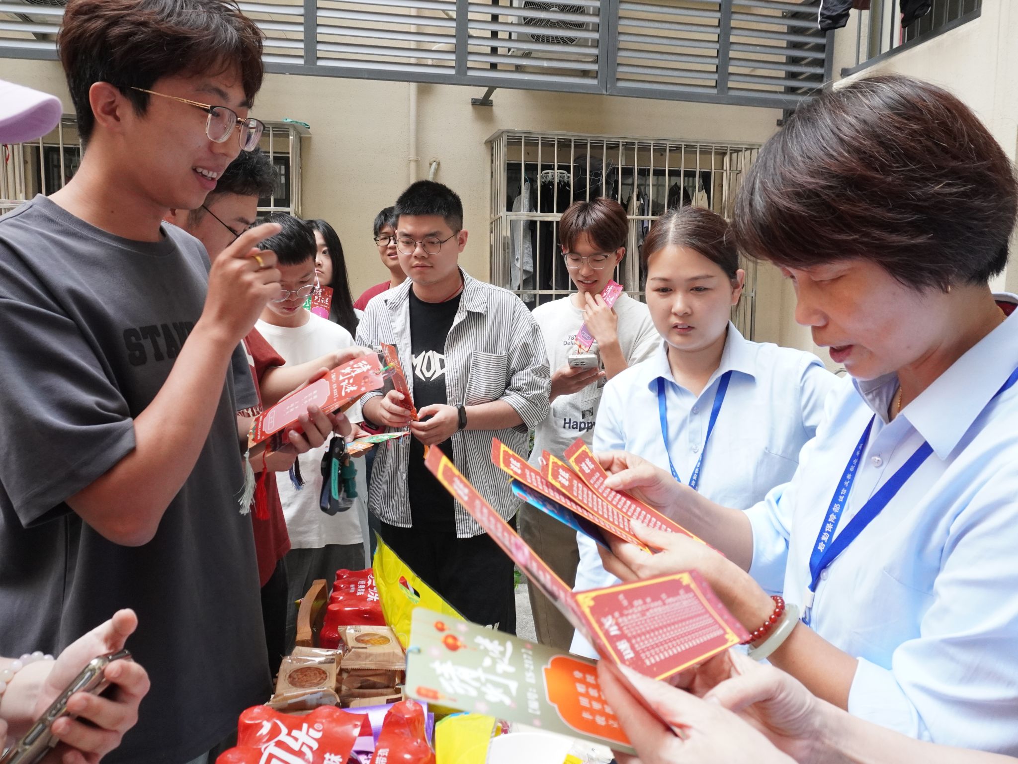 活动现场,学校党委副书记王林清、后勤党委书记黄菊与同学们亲切交谈,共话佳节。随后,后勤保障部副部长苏洪涛与珠宝学院辅导员汤凡渺分别致辞,给同学们送上节日问候,苏洪涛更寄语希望此次活动能成为师生心中 “念念不忘的温暖记忆”。各单位结合专业优势,设计出独具特色的互动环节: