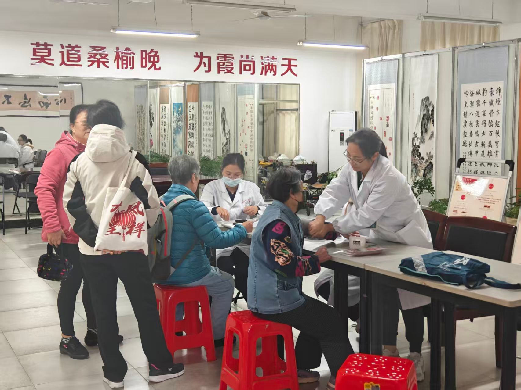 10月21日,社区联合学校离退休工作处、校医院,在老年活动中心举办了“敬老便民活动”。活动现场设置了免费理发、修鞋、修伞、义诊等摊位,这些实用的服务吸引了众多老年人前来参与。不少老人手持待修的菜刀、坏伞,在摊位前领票排队,场面热闹非凡。