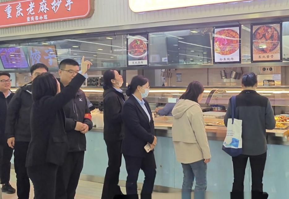 活动首站直达未来城校区学一食堂后厨核心区。围绕师生关注的菜品创新、窗口流转与财务管控等关键环节,南望山校区食堂经理们深入操作一线,从食材验收、烹饪标准化到餐具消毒流程,细致观摩、认真记录,并不时与未来城校区同仁交流经验。双方在互动中凝聚“以师生为中心”的共识,共同探寻服务优化的可行路径。