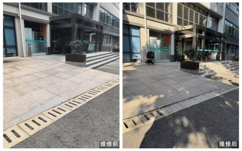 “校医院门口的坡道沟盖板总是卡住轮椅轮子,没想到反映后没几天就修好了!”校医院张老师的点赞,源于物业服务中心对“小隐患”的快速响应。针对师生反映的“校医院门口坡道沟盖板易卡轮”问题,中心第一时间组织维修人员现场勘查,创新采用“填缝”技术:对4块关键位置的沟盖板缝隙进行混凝土填充,既保障了轮椅、儿童推车、买菜车的通行顺畅,又保留了原有排水功能。此次“精改造”仅用5天完成,以“小投入”解决了困扰师生的“大麻烦”。