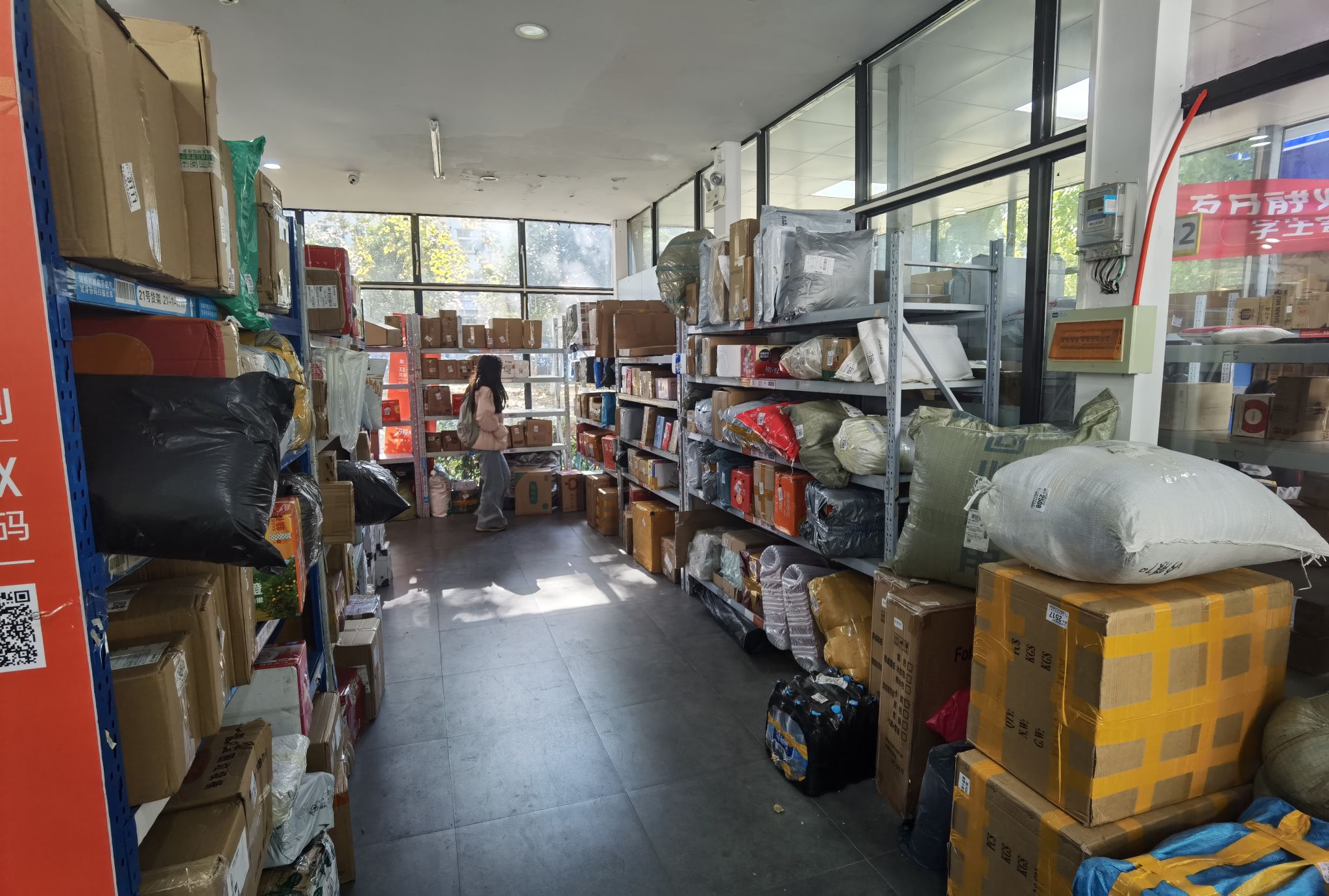 因场地面积受限,北区菜鸟驿站曾长期面临货物堆放密集、师生取件拥堵等困境。为破解难题,物业服务中心联合菜鸟驿站,经多次调研探讨,确定将驿站场地扩容的同时优化驿站内部布局。如今的北区菜鸟驿站,货架规整,快递按包装类型、取件码分区存放,既提升了分拣效率,也让师生取件更顺畅。