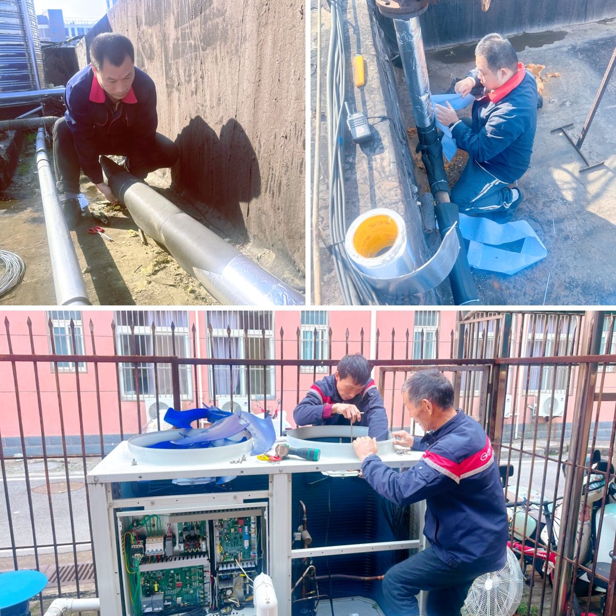 同时工程部加强室外管网保温减耗及设备运行降噪工作,加厚包裹空气源热泵设备管道保温棉、更换机组设备风机组件,双重举措让热水高效用、环境更静谧,并获得了学子们的广泛好评。