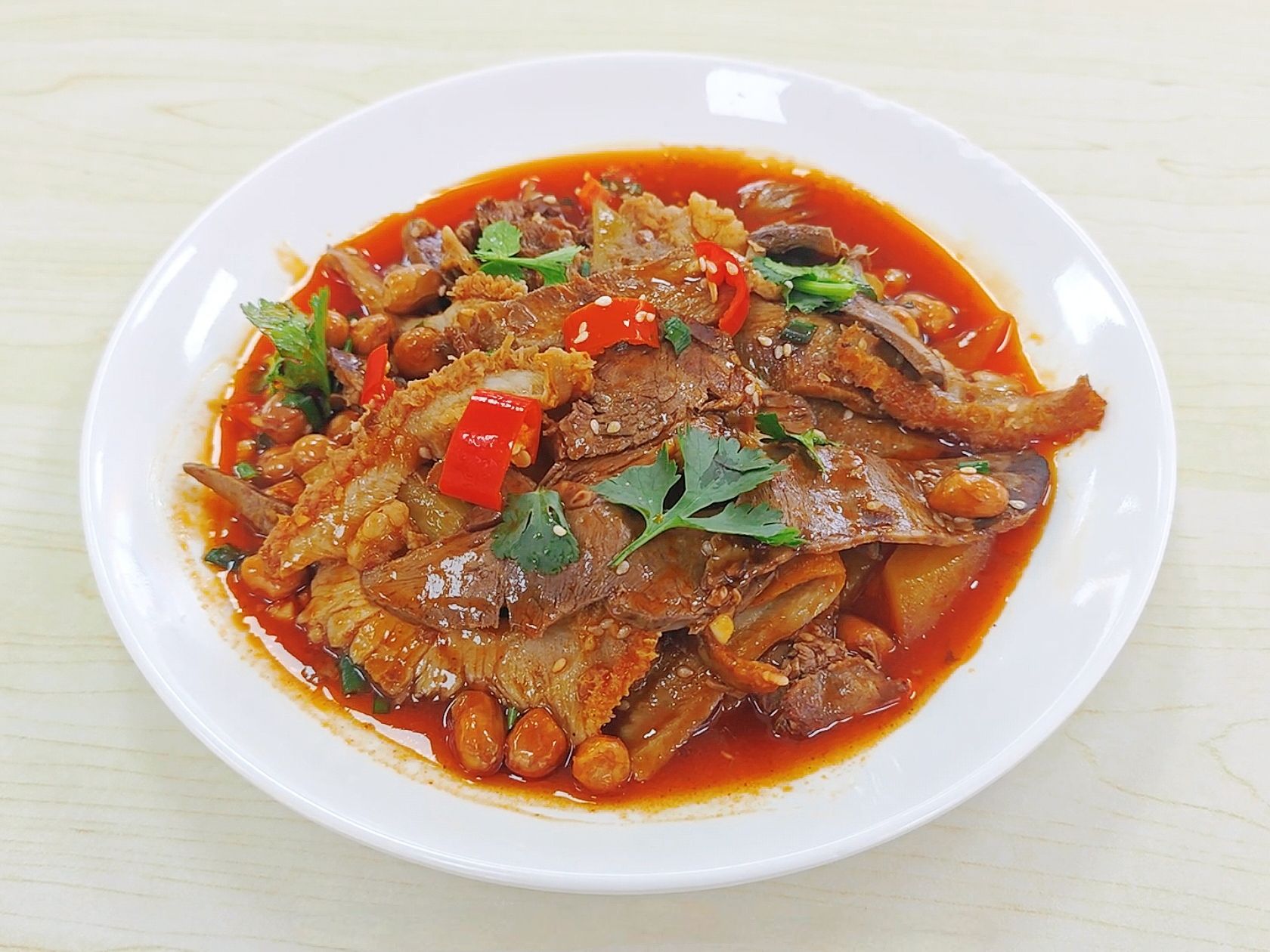 牛肉、牛肚等食材薄切如翼,在红油中微微荡漾