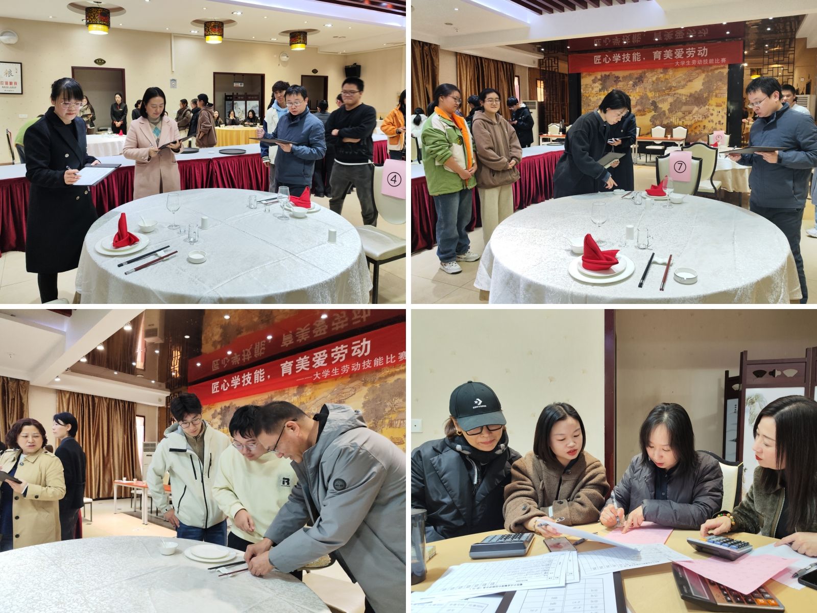 近日,由接待服务中心举办的“大学生中式餐桌摆台技能比赛”与“大学生中式铺床劳动技能比赛”相继圆满落幕。作为“优质服务月”的重点活动,两场赛事以技能竞技为纽带,深度融合劳动教育与礼仪培养、职业精神塑造,搭建起 “以赛促学、以赛促练、以赛促育”的实践平台,生动践行“后勤服务育人劳动教育示范基地”建设的育人初心,为校园文化注入了崇尚技能、尊重劳动的鲜活力量。近50名学生与后勤保障部相关负责人参与活动。