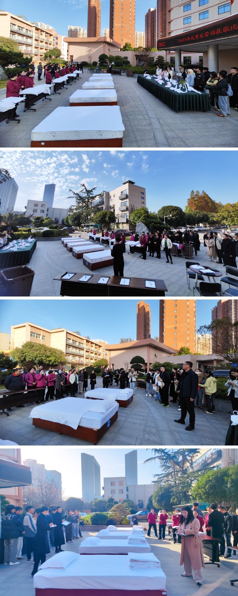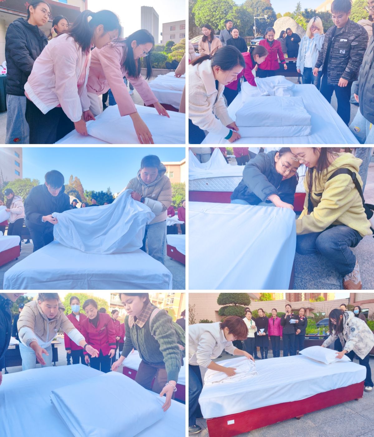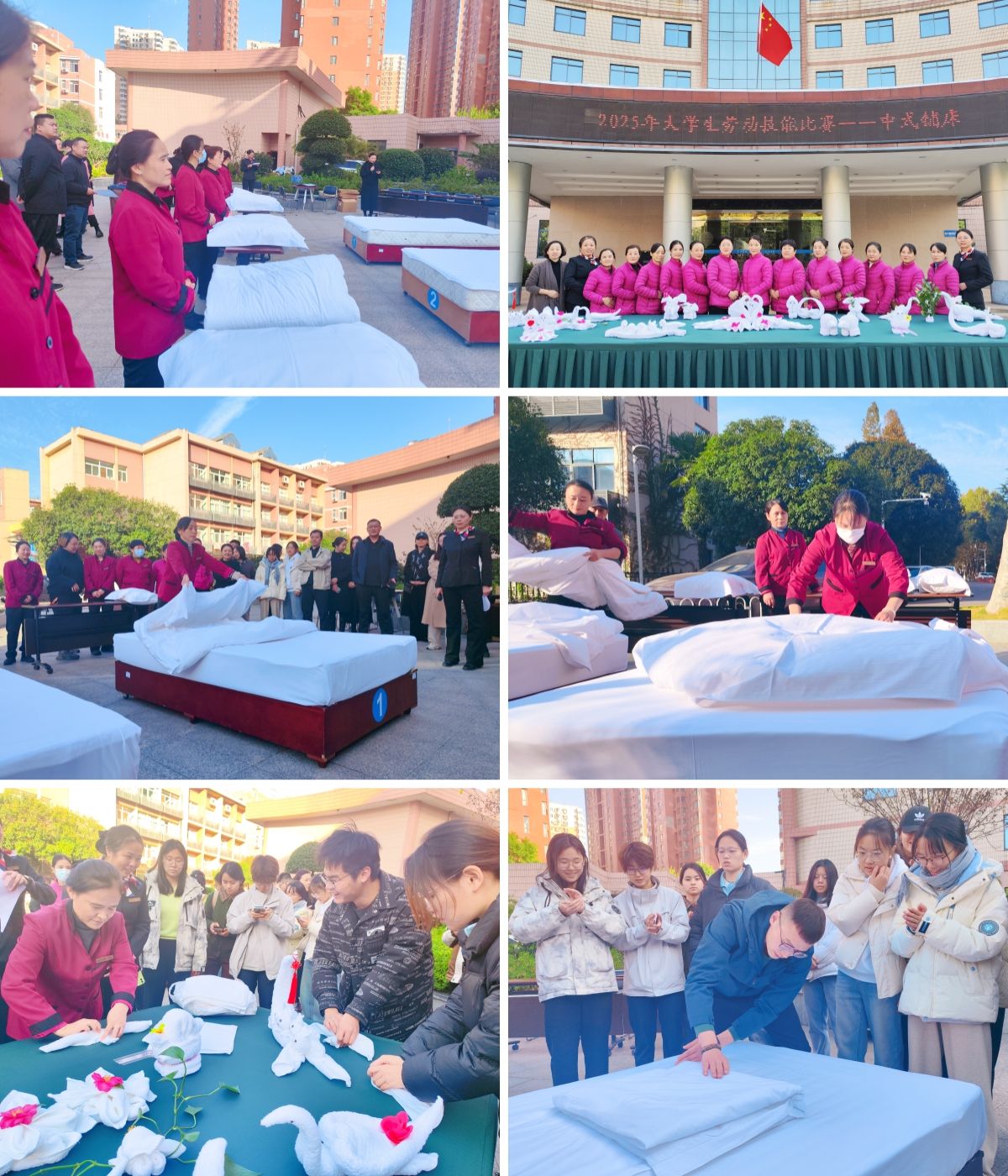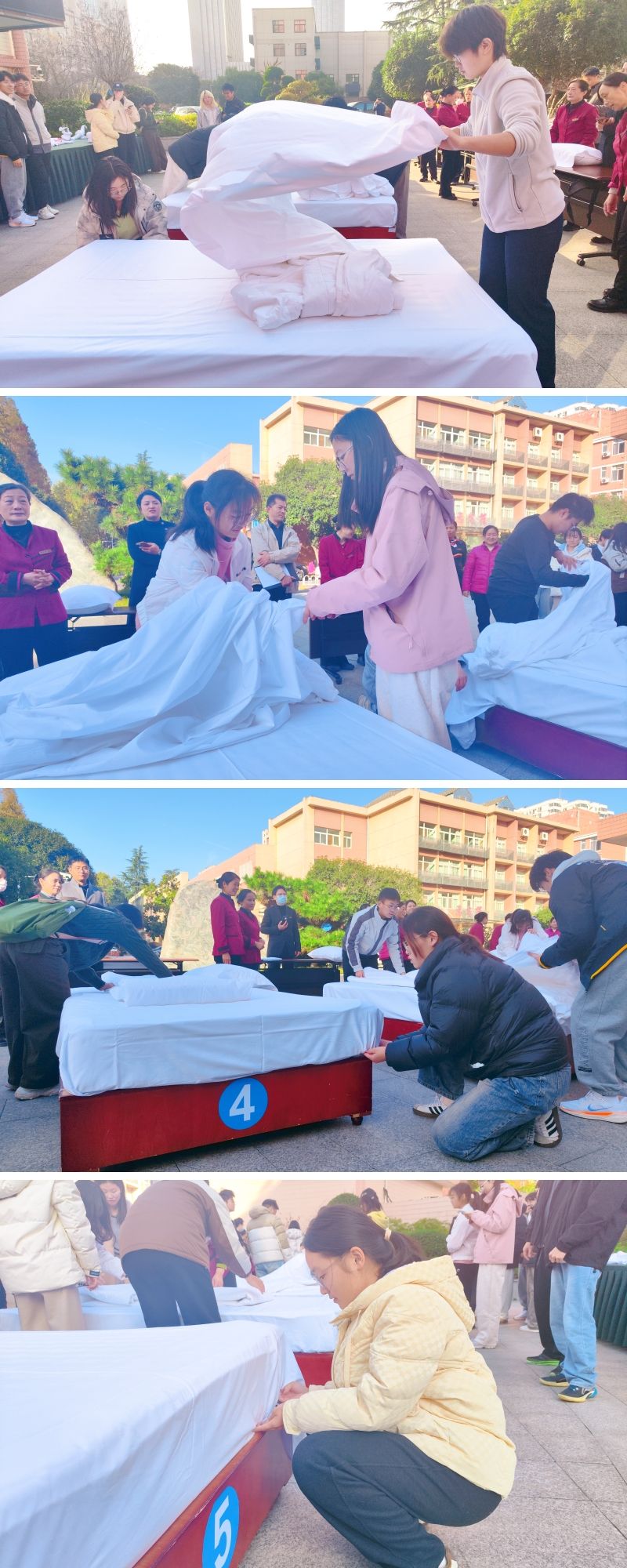 11月26日下午,另一场精彩绝伦的“大学生中式铺床劳动技能比赛”如期举行。来自不同学院的24名选手在迎宾楼前同台竞技,上演了一场速度与精度、技能与风采的巅峰对决。作为接待服务中心深化“劳动育人”理念的重要举措,本次比赛以实践为导向,搭建起理论与实践深度融合的成长平台。
