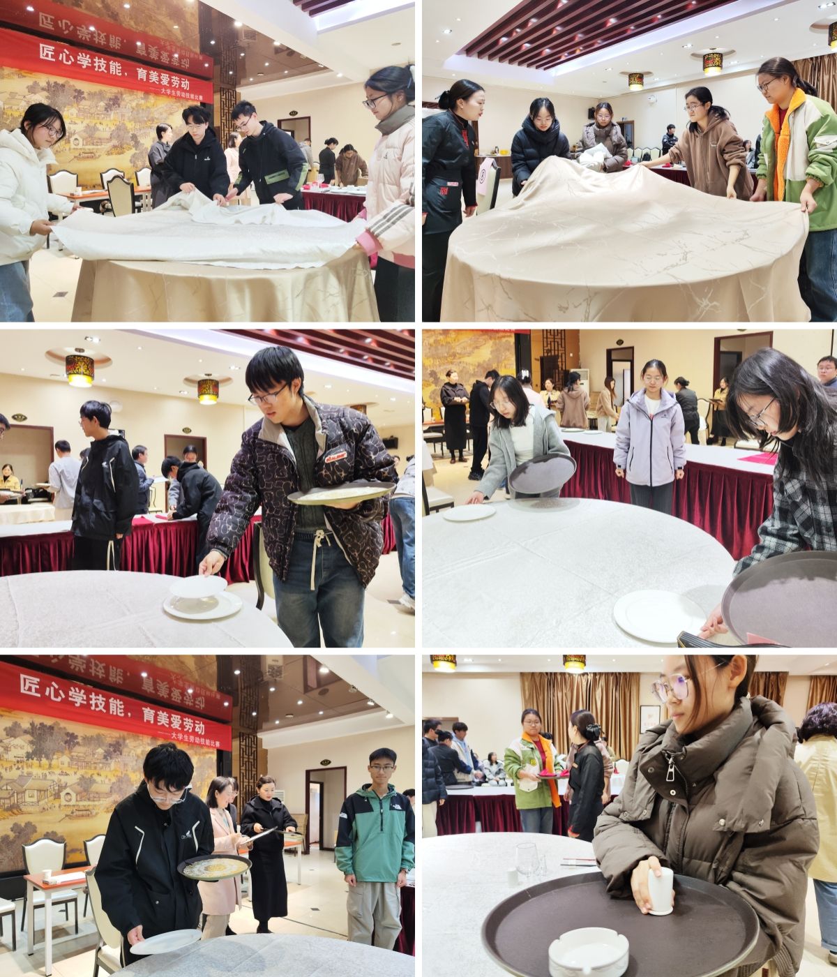 本次摆台比赛远不止于技能的较量,更是一堂生动的“大思政课”与“劳动教育实践课”。中心以赛事为抓手,将优质服务资源转化为鲜活的育人素材,构建“全员、全过程、全方位”育人格局的成功探索。同学们在亲手布置餐台的过程中,不仅掌握了中式摆台的规范流程与礼仪常识,更深刻领悟了劳动的价值、服务的温度和细节的重要性,实现了技能提升与素养培育的双重收获。