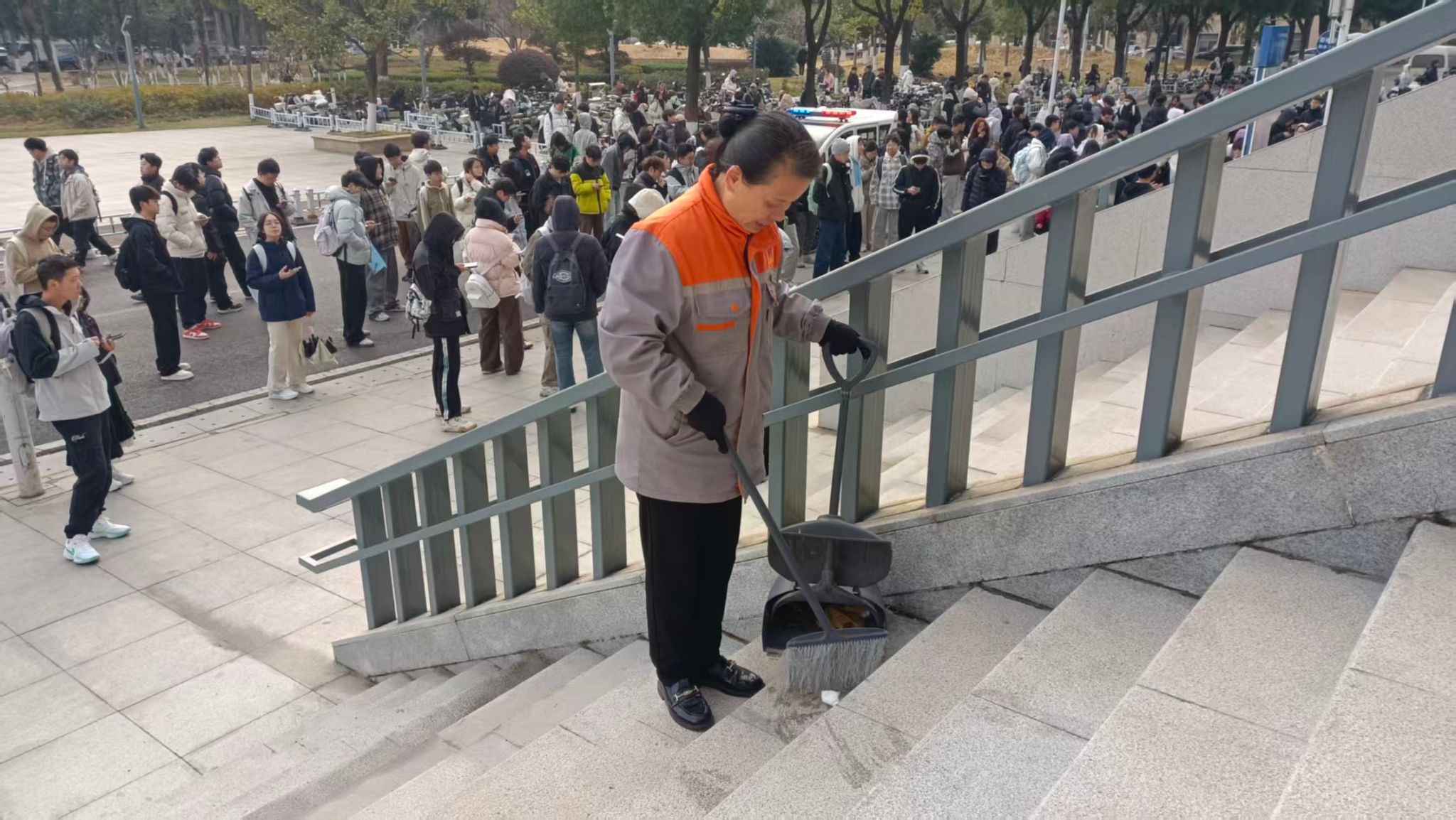 过程协同,动态优化。考试当天,物业服务中心保障人员全员“在线”,再次检查责任区域。保洁人员穿梭于楼宇内外,确保周边环境始终整洁如新;秩序维护人员在考场入口及关键通道协助维护入场秩序,营造安静、有序的候考环境,对考务工作中提出的临时需求做到第一时间响应、高效解决。