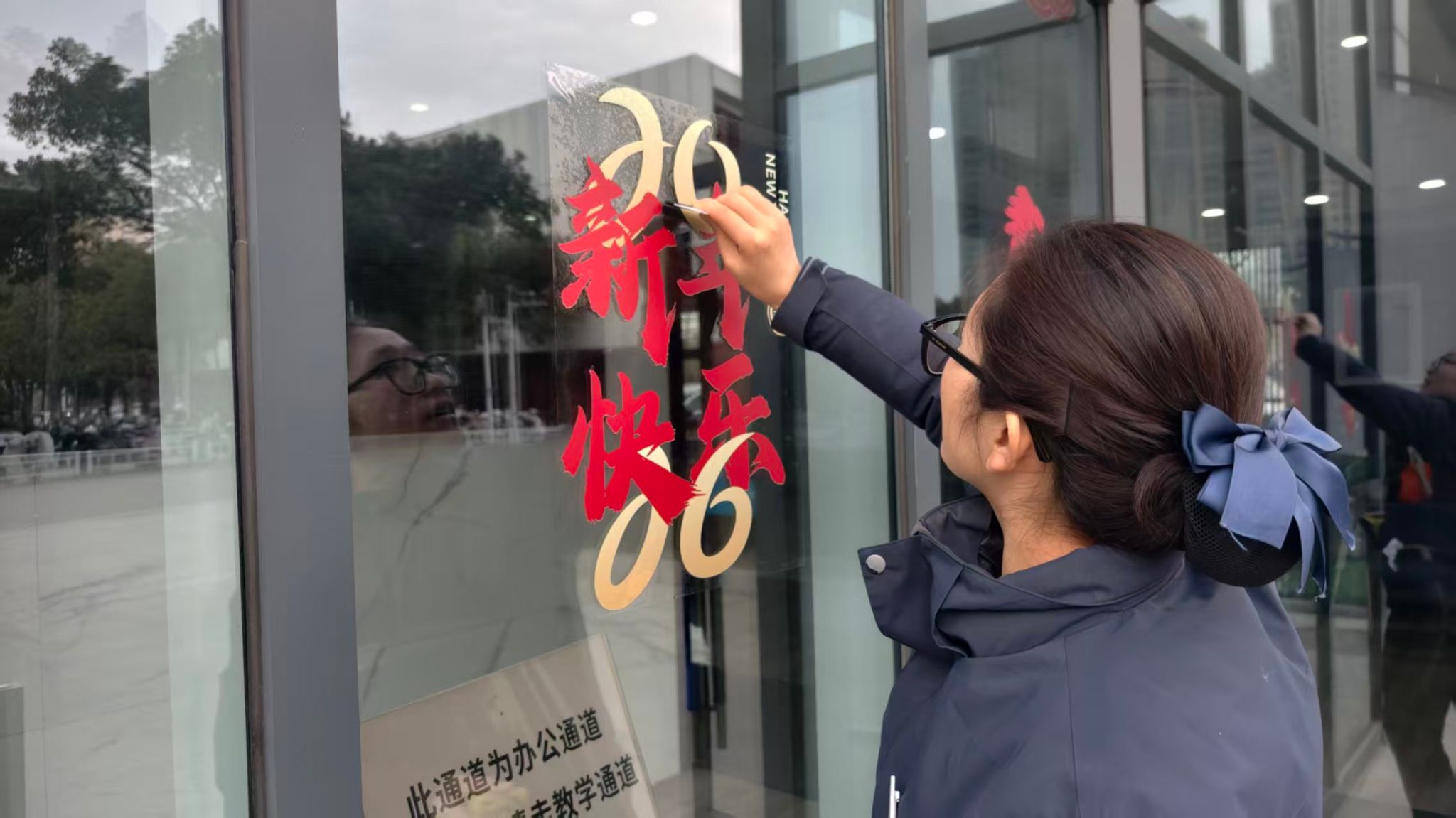 12月中旬起,物业服务中心便启动元旦装饰筹备工作,查看各楼宇大厅、走廊、楼梯转角等公共区域,结合建筑风格与师生活动特点,制定了“温馨、简约、安全、喜庆”的装饰方案,均力求兼顾美观性与实用性,确保装饰效果既符合节日氛围,又不影响师生正常通行与学习。