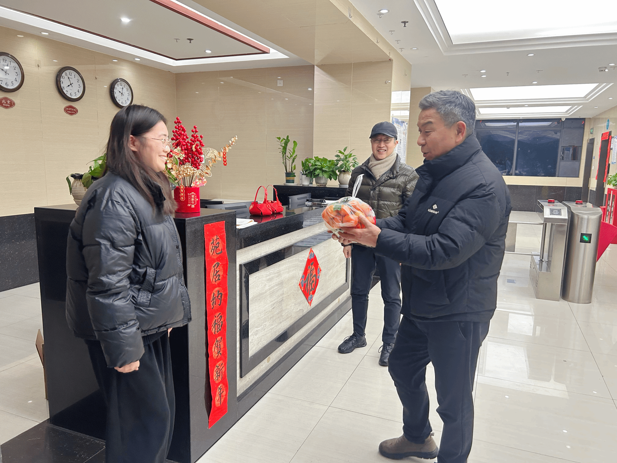 12月31日晚,后勤保障部副部长苏洪涛,学生住宿服务中心主任张红兵、党支部书记郭文娟、副主任杨钦祎及各部门经理组成慰问组,深入东、西、北区各宿舍楼值班室,与坚守在岗位上的一线员工们亲切交流。慰问组详细询问了节日期间的值班安排、服务保障措施落实等情况,对大家坚守服务一线的敬业精神和辛勤付出表示衷心感谢,并为他们送上了真挚的新年祝福和精心准备的节日小零食。一句句暖心的问候、一份份贴心的慰问,如冬日里的暖阳,让坚守岗位的员工们倍感温暖与鼓舞,进一步激发了大家履职尽责、服务学生的工作热情。