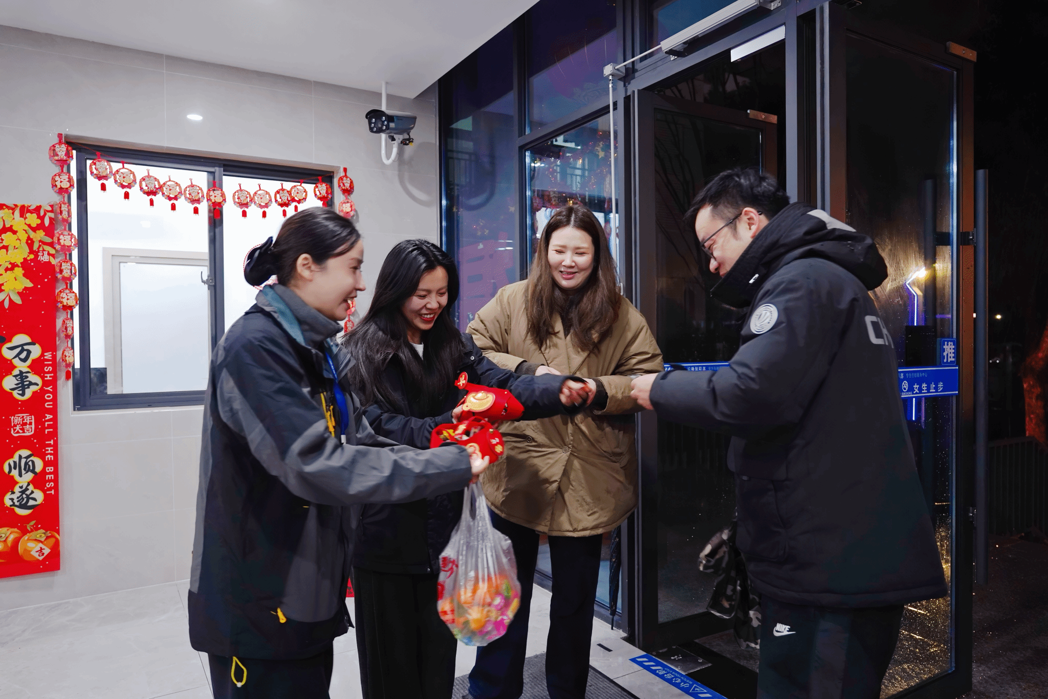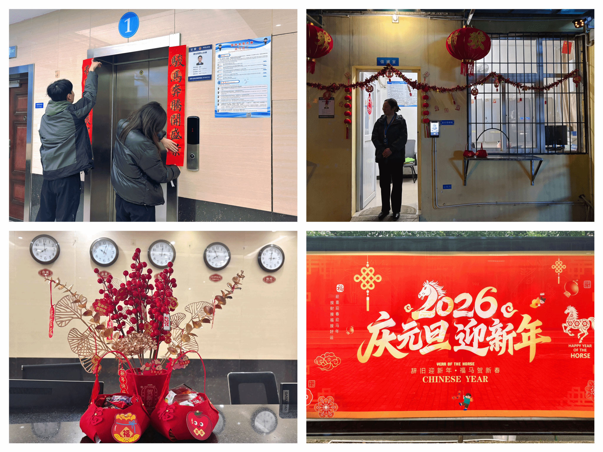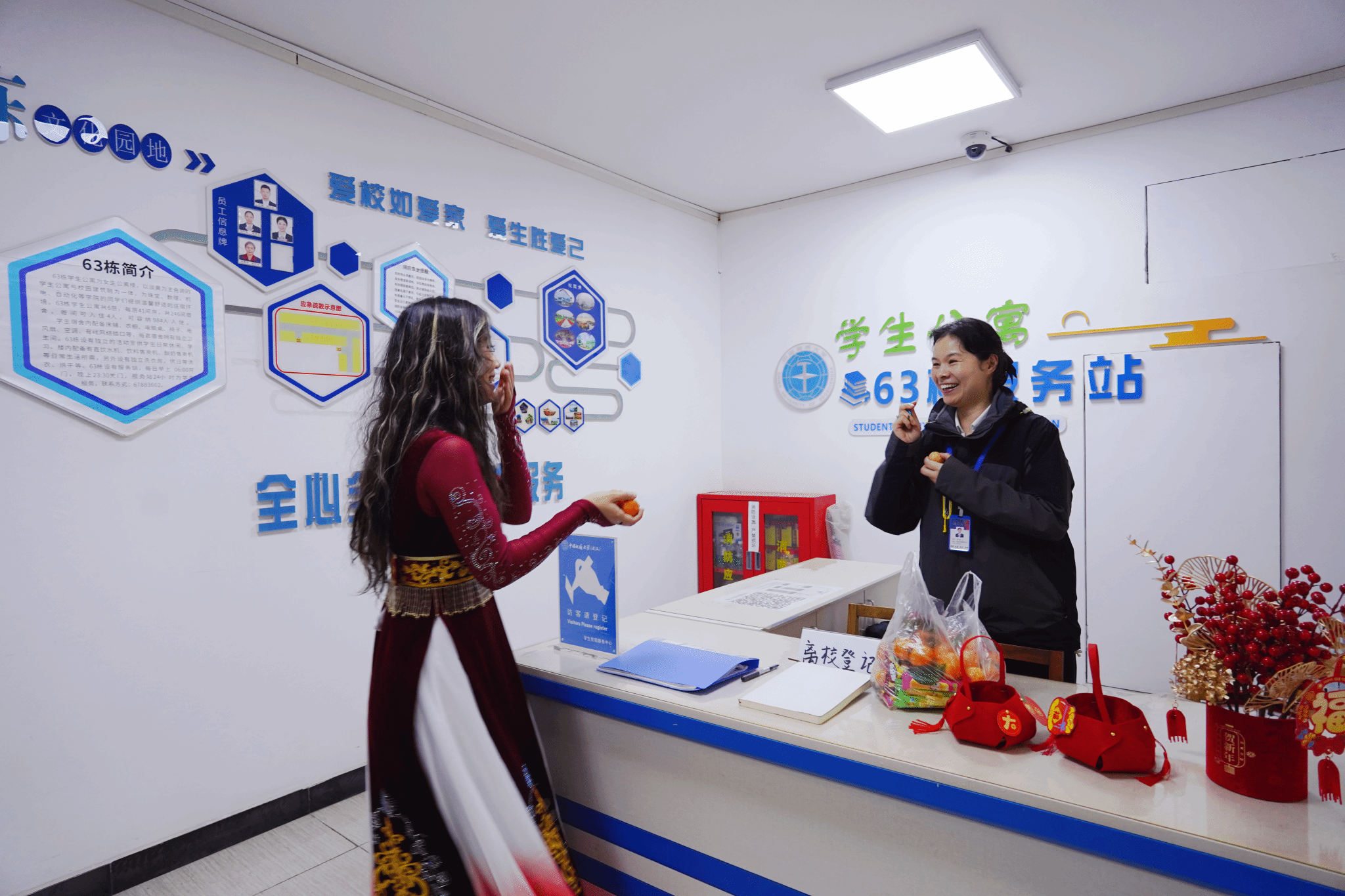 为让同学们一踏入宿舍楼就能感受到扑面而来的节日气息,中心提前统筹安排,在各学生宿舍楼栋开展了全方位的装饰工作。红灯笼高高悬挂,映红了楼道走廊;红春联整齐张贴,字里行间满是美好祝愿;精美窗花点缀门窗,增添了灵动生机。原本整洁有序的宿舍楼,在一抹抹 “中国红” 的映衬下,瞬间被喜庆祥和的节日氛围包裹,每一处细节都传递着对新年的憧憬与期许,让同学们在校园中也能感受到浓浓的节日仪式感。与此同时,各楼栋还特意准备了品种丰富的糖果、坚果等小零食,整齐摆放在值班室供同学们免费品尝。这份小小的心意,承载着中心对学子们的深切关怀,让同学们在舌尖上品味甜蜜,在心底里感受温暖。