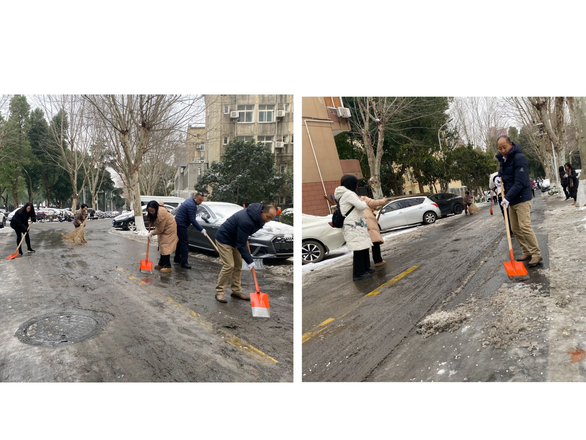 经过近两个小时的紧张奋战,劳动服务中心负责路段的积雪暗冰被彻底清除干净,道路恢复了往日的通畅。这一幕,让过往的师生们深受感动,一名研究生感慨地说:“今天早上出门的时候,地面太滑,我就差点摔跤了,看到老师们清理道路,心里特别感动。”