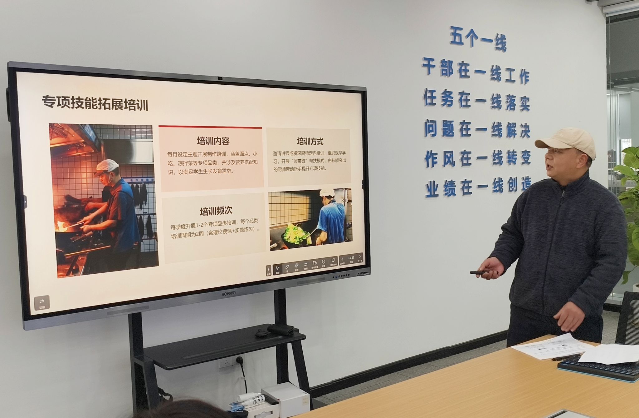 培训中,中心主任王建胜强调,要健全“首接负责、闭环管理”机制,确保师生诉求有人应、有人管、有回响;他要求各餐厅经理与厨师长明晰管理分工,强化协同,在持续提升菜品品质的同时,重点抓好厨师技能内训,并计划新学期以“夜校”等形式常态化开展业务学习,全面提升餐饮保障软实力。
