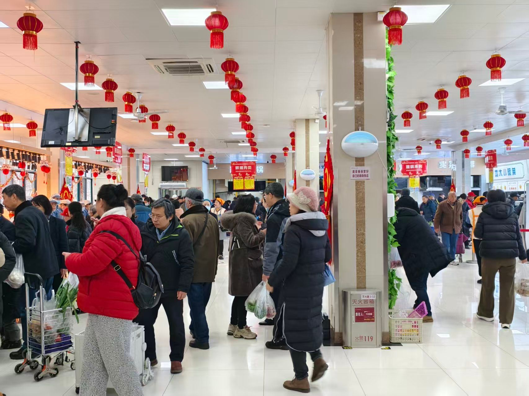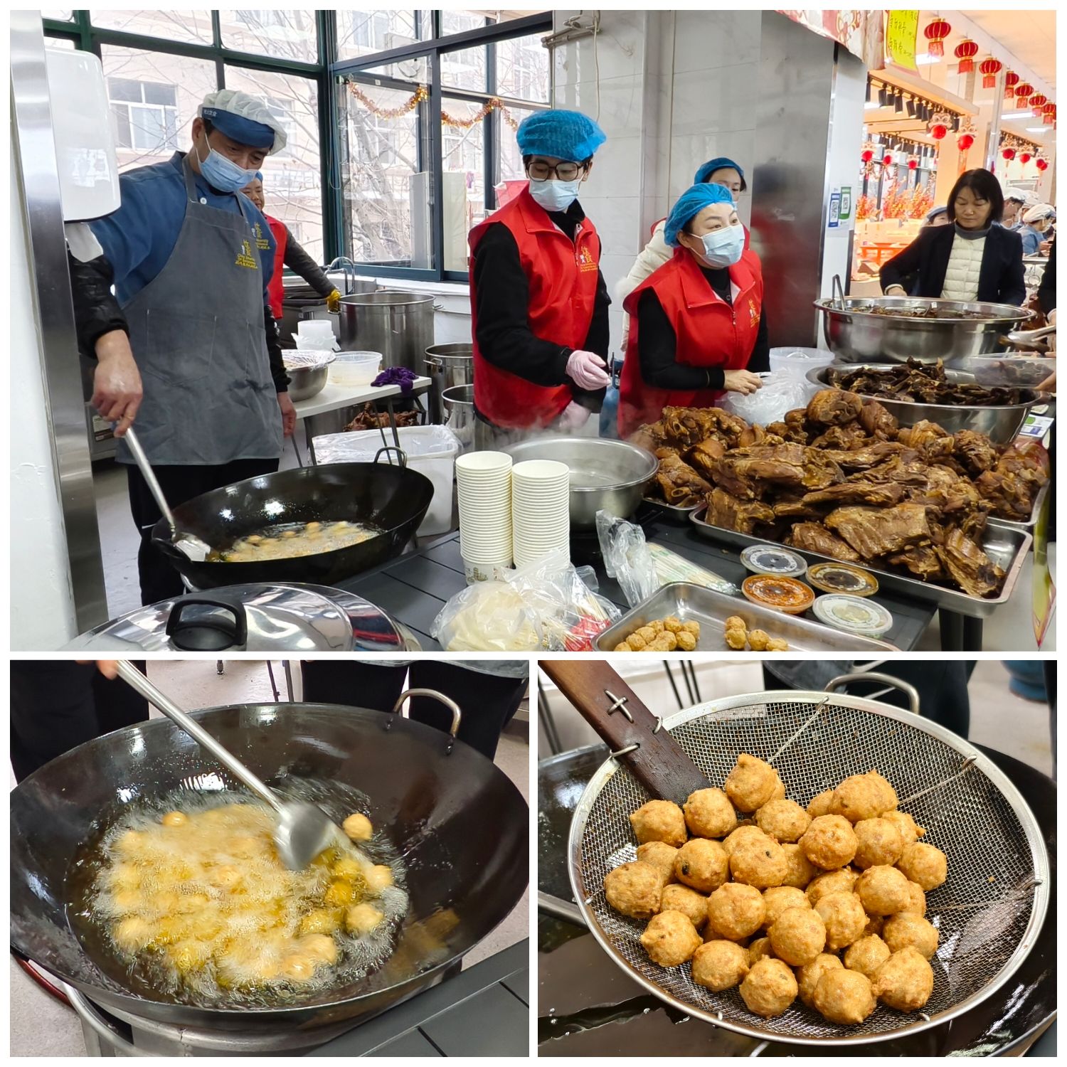 尽管寒风凛冽,活动现场却人气汇聚。教职工与家属们携篮提袋,穿梭于各展位之间,挑选、询价、分享,如置市集。孩子们盯着刚出锅的丸子目不转睛,老先生对着腊味点头称许——这一幕幕鲜活场景,绘成了校园里最生动的新春即景。