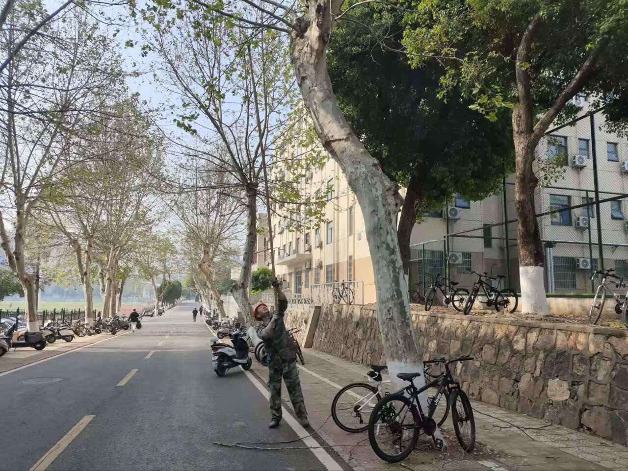 闻汛而动,冲锋在前,打响防汛攻坚硬仗。面对持续暴雨的严峻形势,中心应急小分队成员迅速集结、分赴一线,冒雨开展不间断抢险处置工作。在校园低洼路段拉设警戒线、设置醒目警示标识,最大限度降低持续暴雨带来的影响。此外,巡查校内乔木,及时清理枯枝、处置倒伏树枝,防范高空坠物风险,全方位守护校园安全。