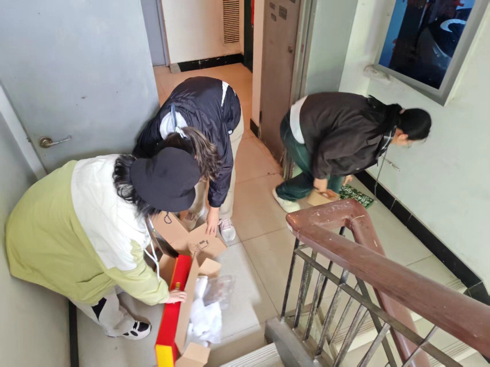 活动现场,虽有细雨,但全体参与人员干劲十足。近180名大学生志愿者手持扫帚、簸箕、抹布等清洁工具,在社区工作人员及物业人员的引导下,快速分组、明确分工,分赴各楼栋开展全方位清扫工作。志愿者们严格践行“奉献、友爱、互助、进步”的志愿服务精神,不怕脏、不怕累、不怕苦,重点对楼栋楼道、楼梯扶手、公共门窗等高频接触区域进行细致擦拭与清扫,全面清理楼道内堆积的杂物、废弃物品,彻底铲除墙面小广告,全力疏通堵塞的消防通道,精准清除各类潜在消防安全隐患,以实际行动改善楼栋环境,保障居民出行安全与居住舒适度。