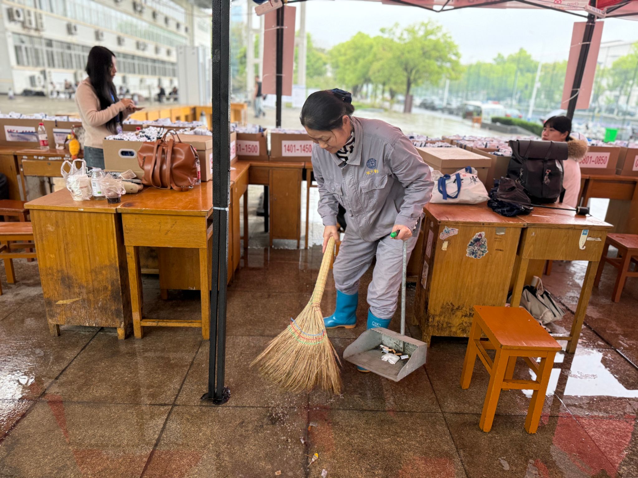 考试期间着力细化服务,物业服务中心根据天气情况提前制定暴雨应急保障预案、提前备足防汛物资,筑牢雨天护考防线。考试期间工作人员定时巡查考场周边,保障通行顺畅与环境整洁。面对突发暴雨,启动应急预案,快速铺设防滑垫、增设警示标识、疏通排水点位,雨后及时清理路面积水、加固户外帐篷;提前设置雨伞集中存放点,配备便民雨伞供考生使用;为行动不便考生提供专人全程陪护,开通无障碍电梯,规划暖心通行路线,以周到服务传递人文关怀,全力保障考生安心应考。