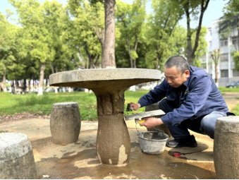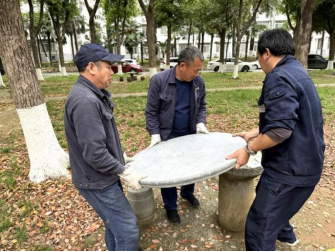 暮春时节,校园草木葱茏,遍布于林荫道旁、湖畔绿地的石桌椅,是师生们读书研讨、休憩交流的重要场所。近日,物业服务中心维修班组启动石桌椅专项维修行动,及时排查消除设施安全隐患,提升校园公共空间使用体验。