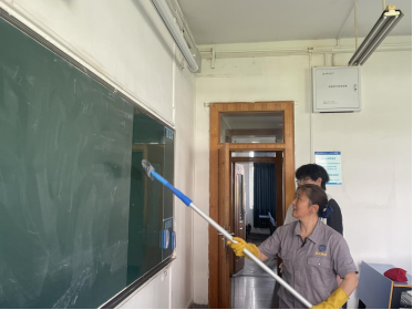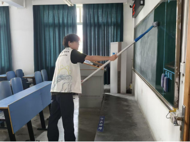 经过志愿者与保洁员的共同努力,教一楼教室焕然一新:黑板光洁透亮、桌椅整齐洁净、地面清爽无尘,为师生构建了舒心高效的学习空间。此次劳动实践不仅是一堂生动的劳动教育课,更让同学们在躬身实践中切身体悟到保洁工作的辛劳与不易,进一步增强了尊重劳动、珍惜成果、爱护校园的责任担当。