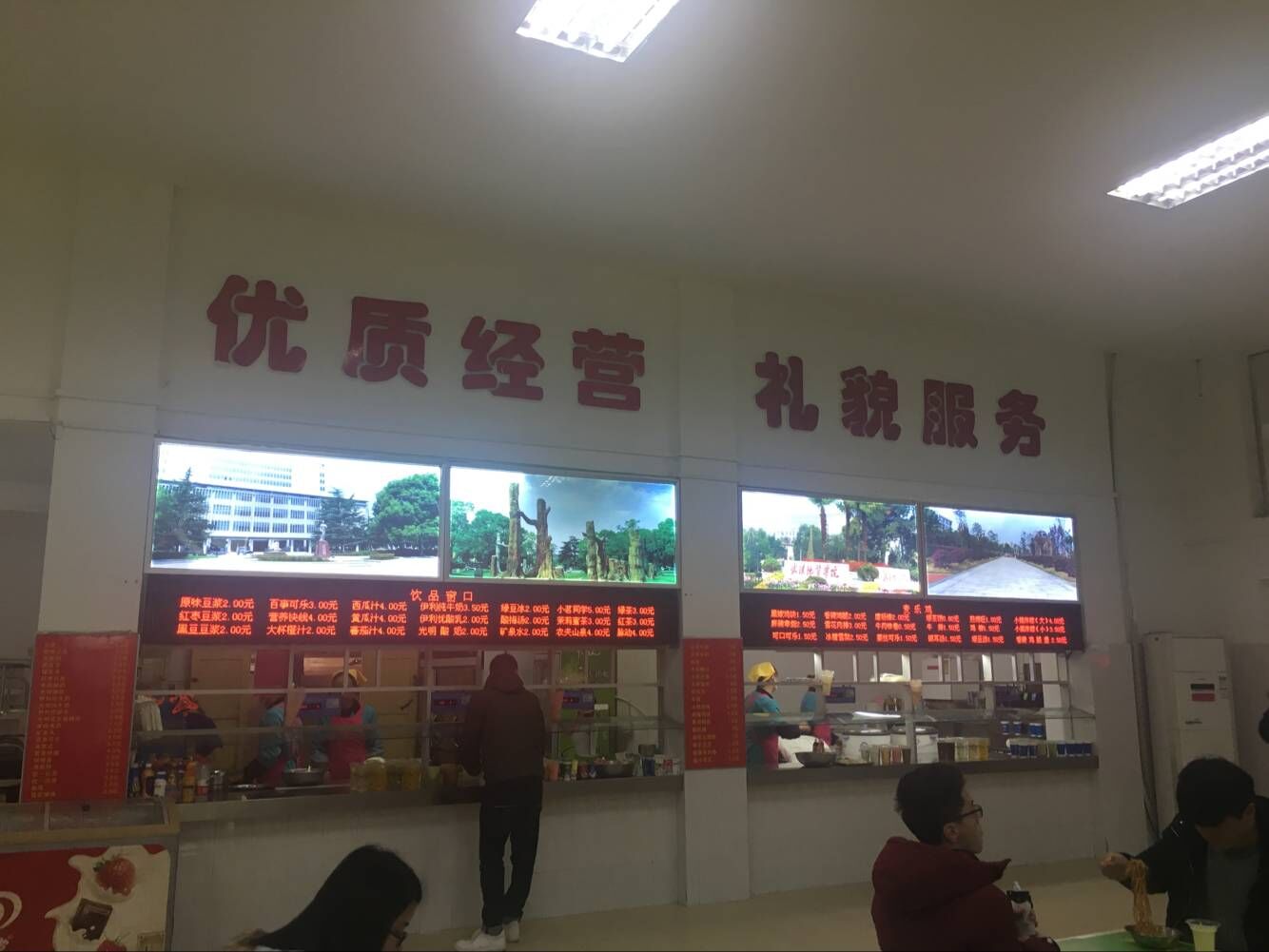 寒假期间,中心完成了洗消一体洗碗机的安装和售卖窗口LED数字显示屏安装工程。洗消一体洗碗机是集自能浸泡、除渣、清洗、消毒、烘干于一体的洗碗设备,采用纯物理纳米超声清洗与独立远红外烘干相结合的方式对餐具进行双重除菌消毒,确保餐具清洗灭菌消毒效果,有效保障食品安全洗消环节;售卖窗口LED数字显示屏代替了原有的纸质粘贴方式,电子字幕显示方式使售卖餐品、价格更加精细、明了。LED显示灯源充分利用其节能照明优势的同时,最大限度的发挥了装饰美观的功效,使得食堂售卖大厅更加明亮、美观,焕然一新,带给大家不一样的就餐体验。
