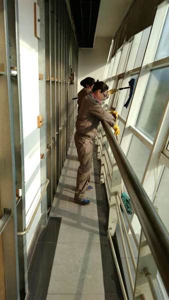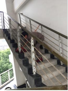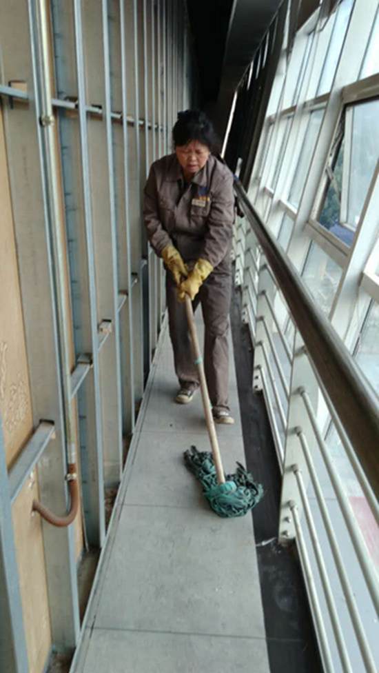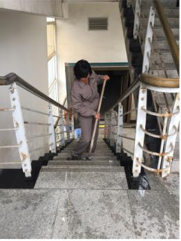 从22日开始至26日,保洁组成员在完成当天保洁工作量后团结协作,打扫走廊内的卫生,逐层清除掉这些卫生死角。