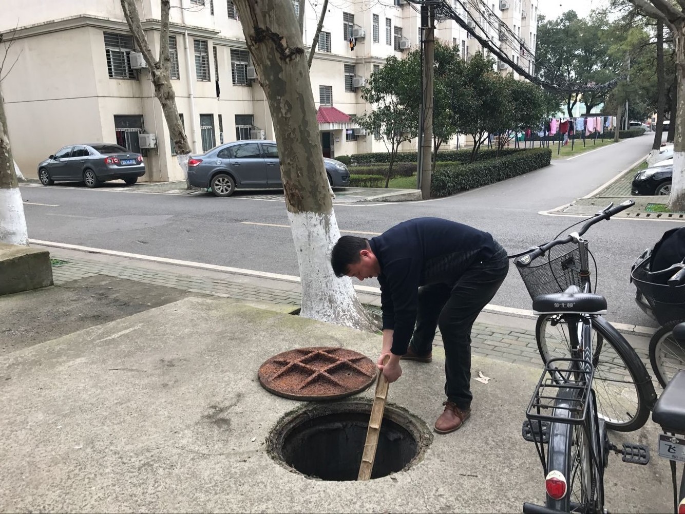 经仔细查看了解到,管道堵塞的主要原因是管道内有塑料袋、抹布及少量泥沙等污物沉积。维修人员不怕脏、不怕累,用竹棍不停搅通,用镐一点点地刨,甚至用手一把把的掏,全然不顾污水的腥臭,也不怕贱到身上的脏水。因维修人员不够,维修彭部长早已脱了外套挽起袖头疏通着。这样的情况屡见不鲜,他早已习以为常。傍晚时分,因怕影响学生的正常生活用水,他们仍加班加点对淤堵的下水进行疏通。