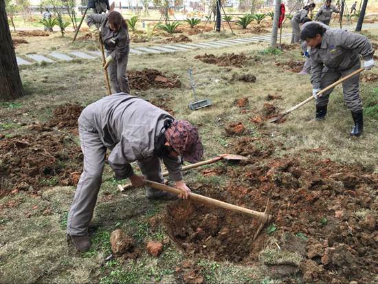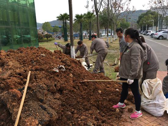 在大家的共同努力下,仅2天时间就完成了300余颗梅花树苗的种植工作。