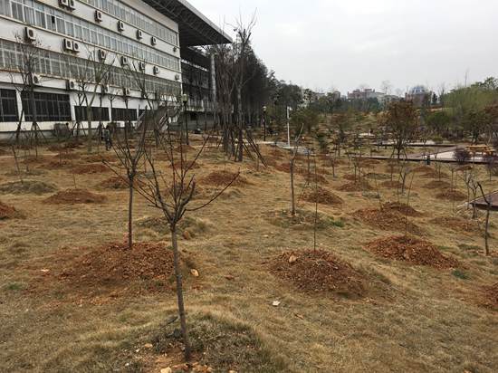 因时间紧、任务重,为抓住春季气温回暖的黄金时间,物业服务中心各部门均抽调人员参与到校园补栽补种工作,大家齐心协力、分工协作,严格按照校园服务部植树流程:先挖坑;再整理土质,上底肥、施除菌剂;然后种植树苗;最后回填土。虽然程序较繁琐,但植树现场却是一派紧张而有序的景象,参加植树的同志,各个热情洋溢、干劲十足,他们中有的挥锹挖坑,有的运苗、扶苗、填土、踩实,每个环节都细心、认真,确保苗木成活率。